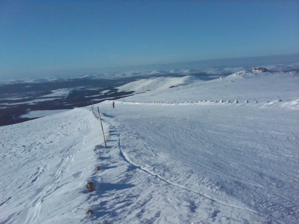 Today was really great in the end but at first there were not many tows open only the Fiacaill ridge poma and the Car part T bar. the Digging had stopped on the funicular as they were going to blast the snow above the Coronation wall. We stopped to watch and nothing happened…..I think that we were expecting a massive avalanche but it was a bit of a damp squid. As we were watching someone didn’t feet the pomma back in and it put the tow out of action for a while. Luckily they opened the Corrie Cas T bar so we could play on that. the queues were quite large so we went over to the day lodge poma. there were not queues and we had a brilliant time going up and down there for a while. late on tin the day they opened up the M1 poa and so we got up to the top. the ptarmigan building was almost completely covered in snow. We went down the track side and the M1 and then the M2 absolutely brilliant.