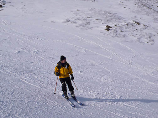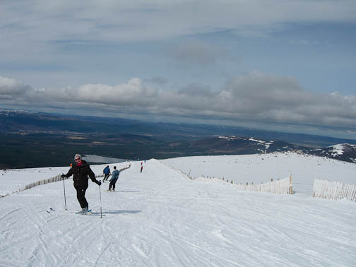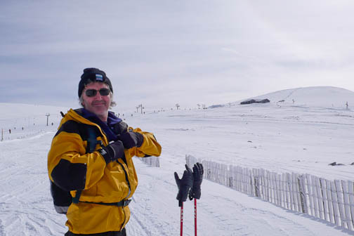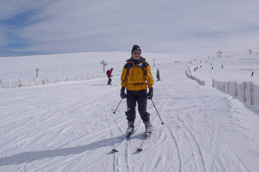 we had a Brilliant day on the hill, all the lifts were open although the bottom runs were a bit patchy. the rest of the mountain was wonderful, lovely snow…no ice at all. We stayed mostly on the Aonoch and west wall area. We skied down the Aonoch bowl from the M2 and the west wall. Later on in the afternoon we went down the White Lady. All in all an excellent day. My heel survived pretty well.