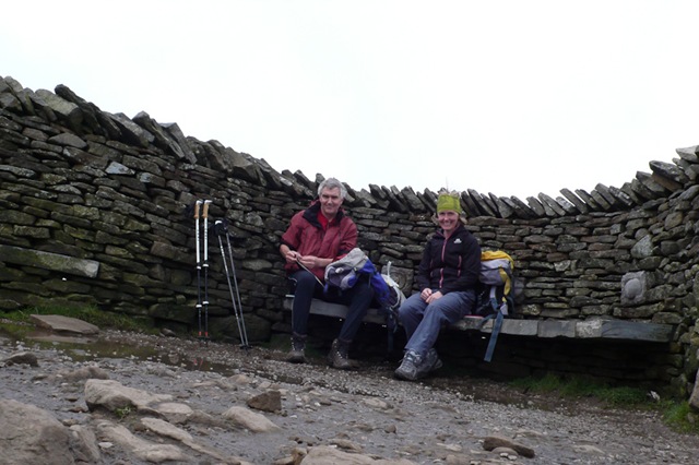 Our first Reccy for our three peaks attempt later in the year. We had a cuppa and bacon butty at the cafe and headed up Pen y Ghent. It was very very windy at the top. Also lots of rubbish in fact by the time we got back down we had loads of banana skins and plastic bottles. At the top we headed down the path and it got quite boggy and then we had a interesting river crossing we trekked up stream and eventually crossed by thing that are there to stop the sheep. It then got very very boggy. Having looked at the maps when we got home we decided on an alternative route to try out on Monday.