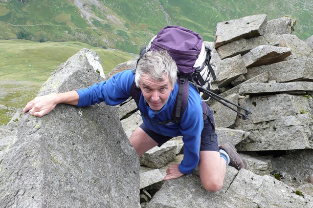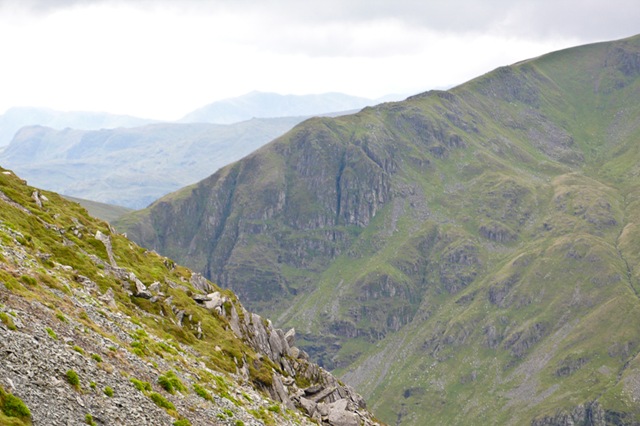 Pinnacle Ridge grade 3 *** with a bit of a mod. was so much better than we remembered. At the top we looked across the valley to Falcon Crag were we Ice Climbed last year .