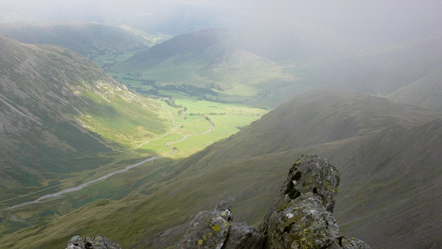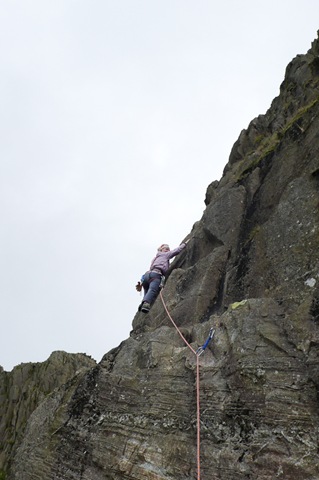 Oh yes an excellent day. We trundled up the Band in anticipation, definitely turn off two soon below the climbers traverse but on the route we took last year in the snow. It was probably a quicker and shorter route but less pleasant. There is a bit of a pattern emerging with us and arriving at the bottom of routes because we arrived moments after a party of 3 and man his son and son’s friend and they were so very slow!!! but and excellent route that I would like to repeat with less waiting around and when it is a little drier as it was a bit greasy. We returned along the climbers traverse a very nice path and further down The Band Roger broke his stick. I like my new boots!!!