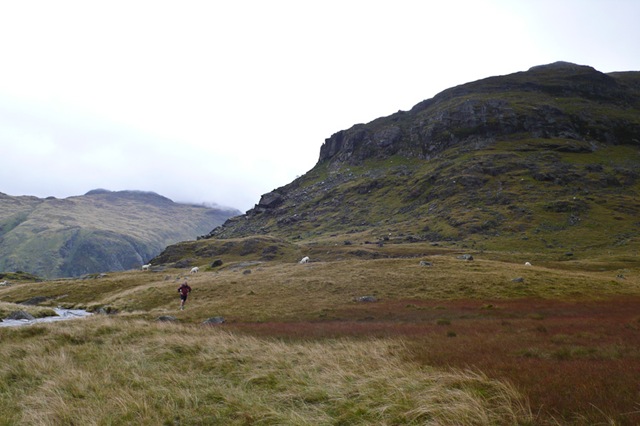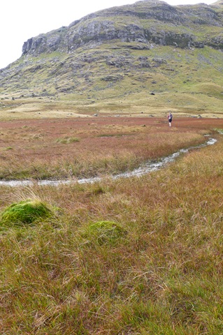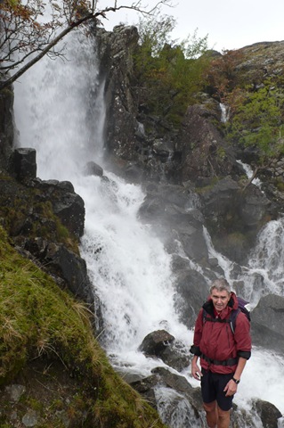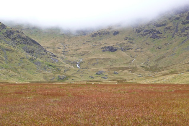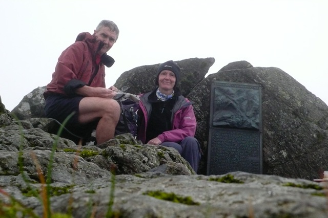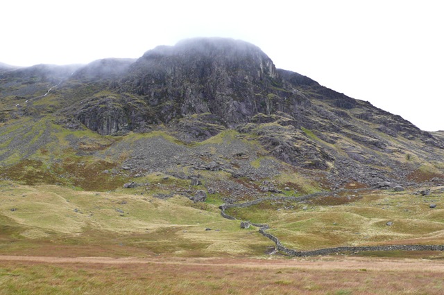 The first day of Rogers week off before he goes back full time…..We planned to scramble up sour Milk Gill and then scramble up Gillercomb Buttress. What we did was climb up the path at the side of Sour Milk gill as it was totally full of water, we then got across to Gillercomb Buttress by stream jumping and squelching but found a decidedly damp buttress so we climbed up the side of that too. We then thought we would follow the ridge round and make a horseshoe of it and come down over base brown. We must be getting used to the scale of Scottish mountains as we began to think that we might have gone to far when we started climbing up more than we expected….some deducting left us thinking we were heading for the top of Green Gable…imagine the surprise when we surfaced at the top of Great Gable! It was misty and we had got the map in the sac!