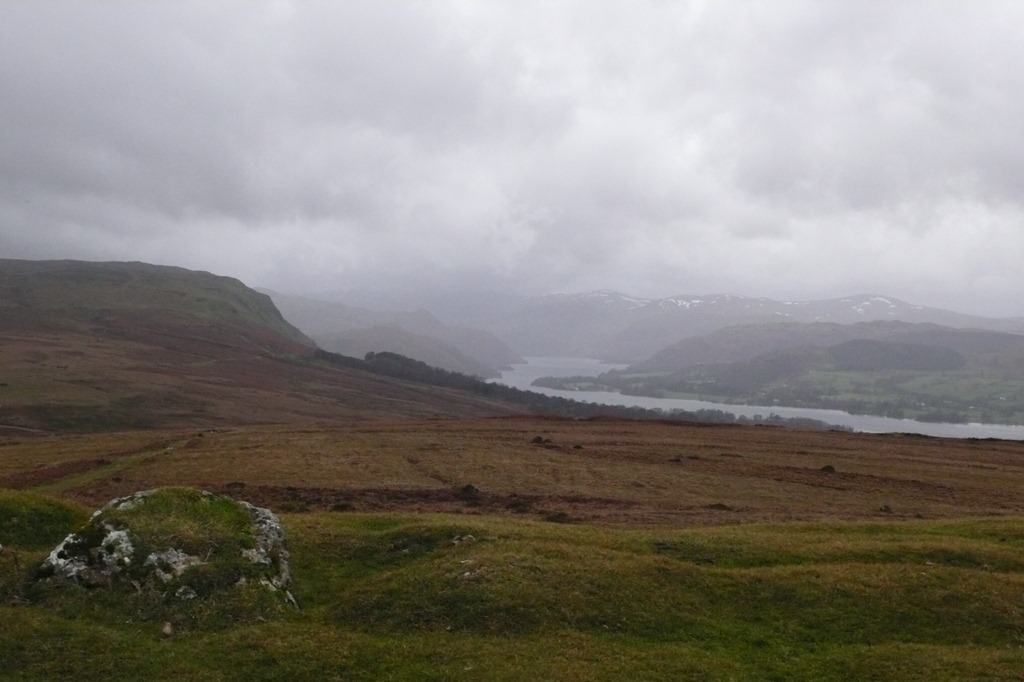 With a pulled muscle in my back and rain forecast we decided on a short walk up Heughscar HillLooking down UllswaterOn the summit