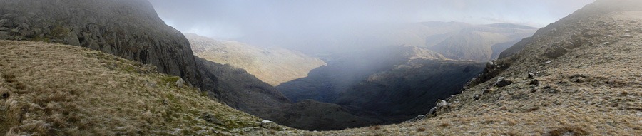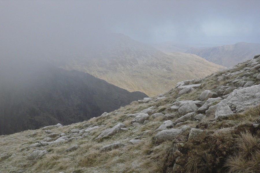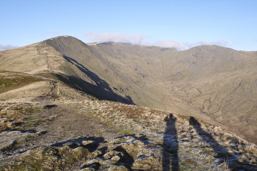 Looking back down toward Fairfield Great Rigg on the left and Hart Crag on the right