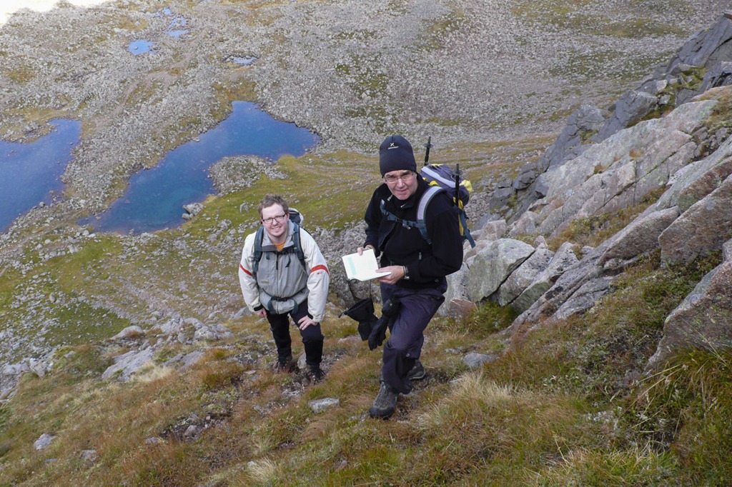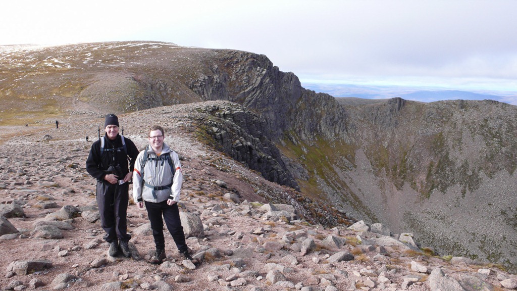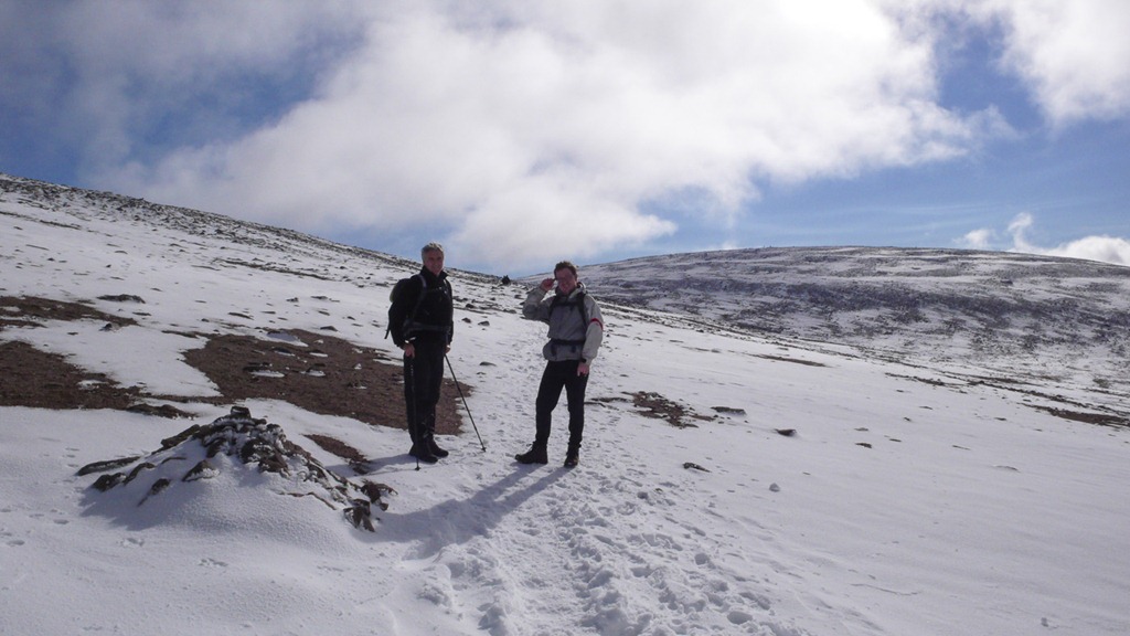 A fine day Joe still staying with us we decided to go up the scramble Headwall grade 1 at Coire an t-Sneachda. We had a bit of route finding difficulty not really being familiar with the crags yet but eventually got to the right place and up we went. Once on the plateau we headed to Ben Macdui, a fantastic day such great views.