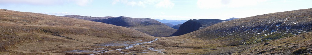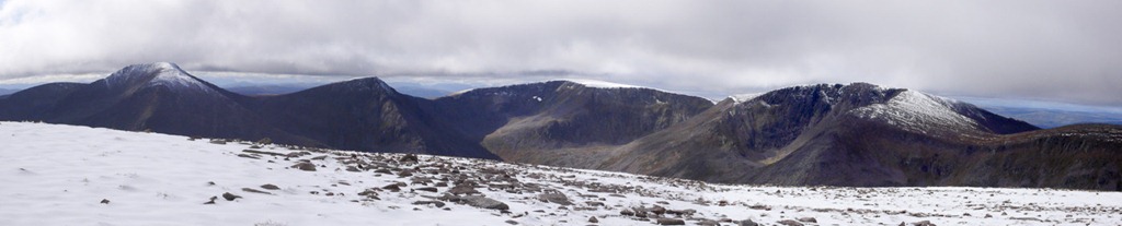The Devils Point, Stob Coire an t-Saighdeir, cairn Toul ( Angels peak – Sgor an Lochain Uaine is hidden) and Braeriach