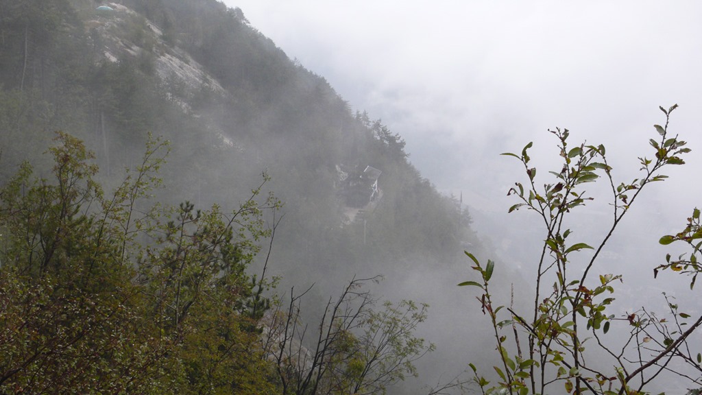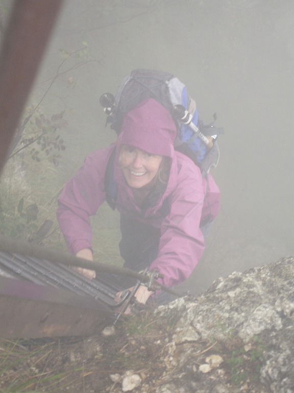 We were going to go up the via feratta with all the ladders today but as soon as we set of the weather clagged in and it started raining so we just went for a walk but there were a couple of ladders.