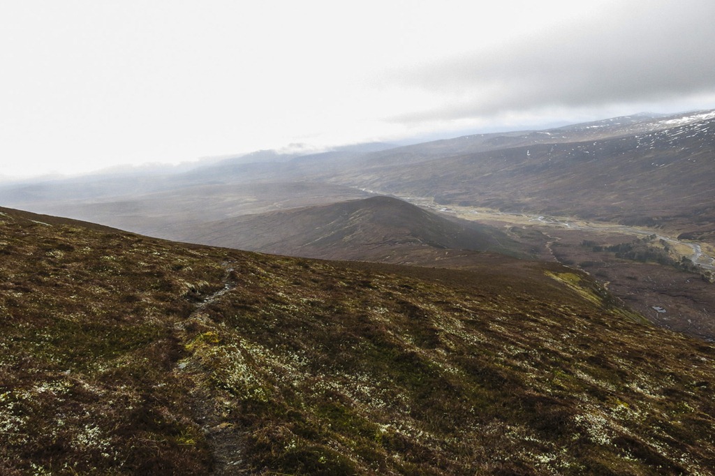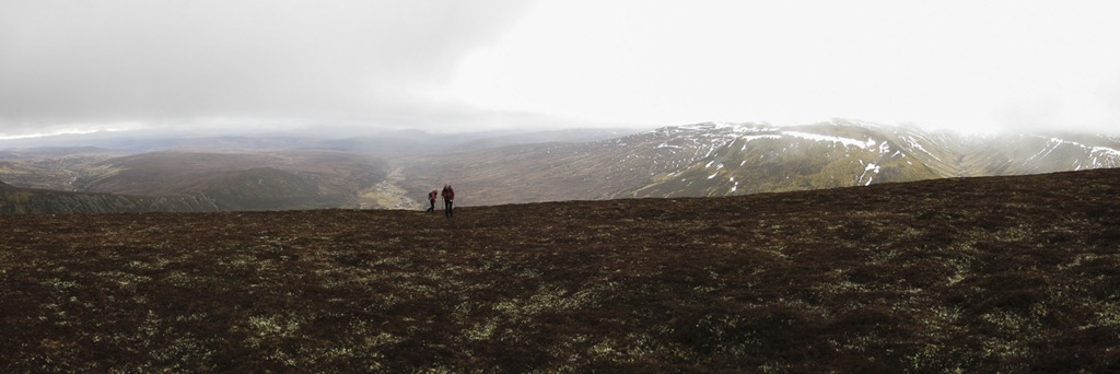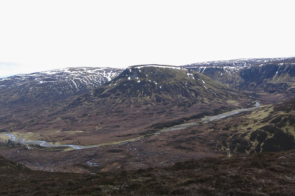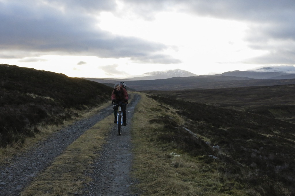 Today we decided to revisit Gaick Pass. Back in May 2011 we cycles right through the pass back to Kingussie where we had caught the train. Today we took our bikes as far as the derelict Sronphadruig Lodge. We hid the bikes and headed over the boggy ground to the beginning of the steep climb up An Dun. there was a little track most of the way up and it was actually quite a pleasant climb. We reached the fist Cairn and looked to towards the second on the ridge – it looked higher but when we got there the first one looked higher! We trogged down and had a sandwich by the Loch. Before heading up the next hill Maol Creag an Loch. this was steep too with a big flat top – I headed to the left and should of gone back to the left but we had a bit of a quick walk back to the summit. Time was getting short so we wasted not time in making our way back down to the bikes and a cycle back to the car in the near dark. A very good day with a lovely sunset.