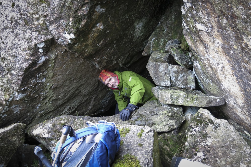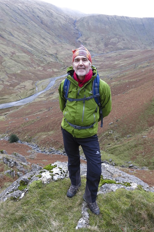 Roger read that there was a cave at the bottom of Cam Crag Ridge we spent lots of time looking for it and in fact we tried a couple of times to crawl down the flue from the fire! eventually we found it and it was a lovely cosy place. cam Crag ridge was a great scramble I thought it might be a bit wet but it was fine and dry. once we got to the top the weather was beginning to get a bit inclement we headed to the top of Dovenest Top. Then we went up to Rosthwaithe Fell and down the other side of the valley and walk