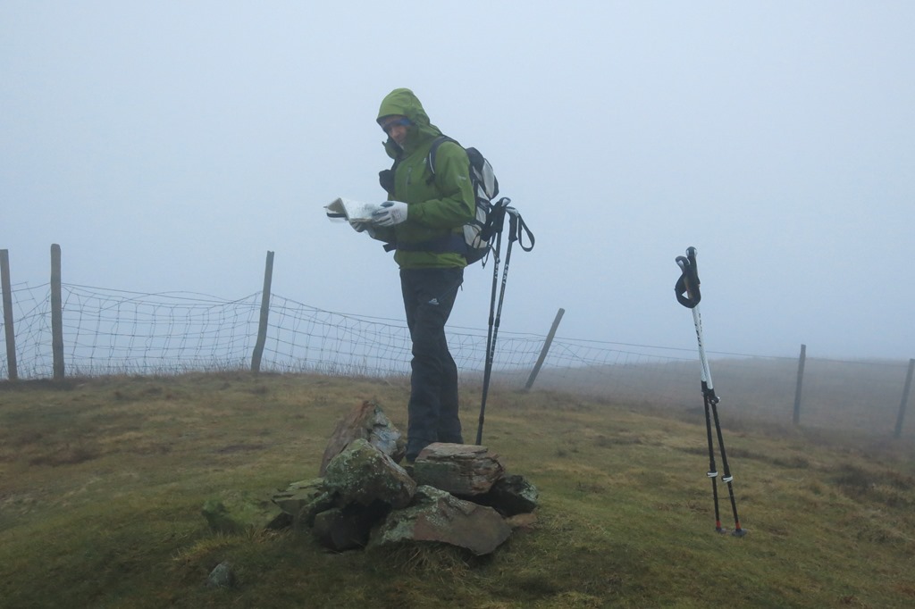 Looking towards Kelton Fell with the rest of the walk in the clag.