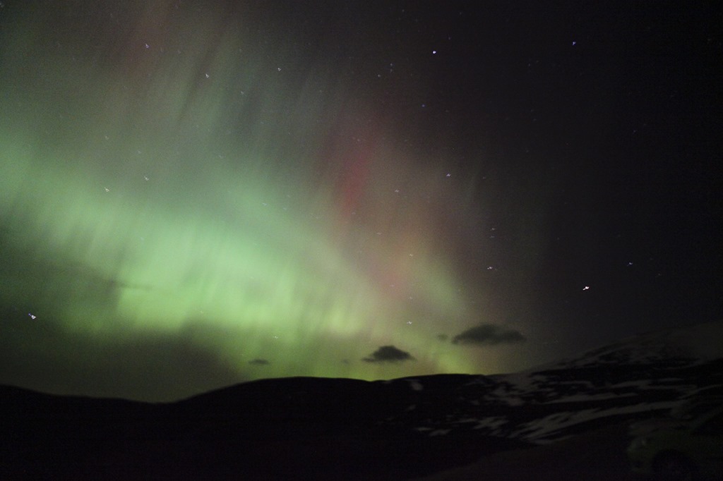Fantastic snow conditions, just the Cas, ridge, car park and Sheila Tows open. Great day and then in the evening we saw the Northern Lights
