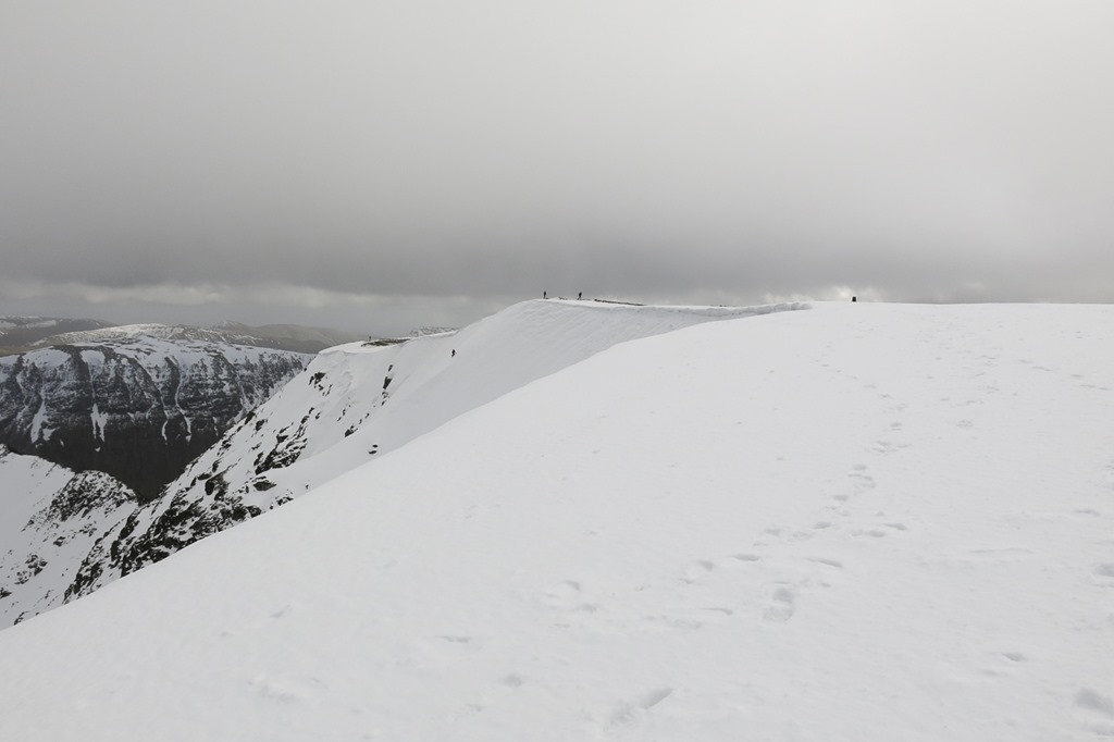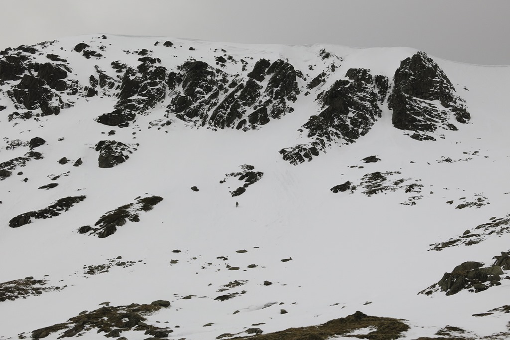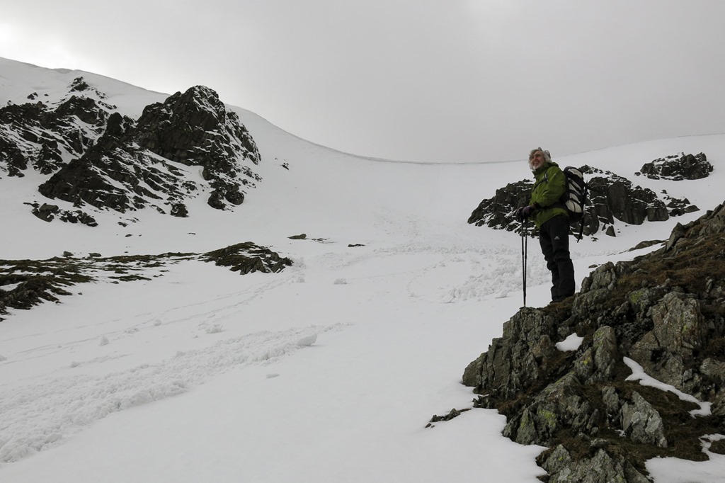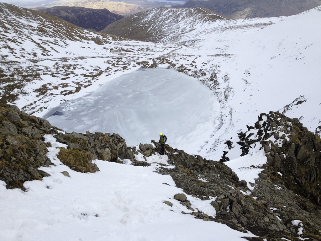 We set off to Red Tarn hoping to find some good snow in the gullies but found a load like loads of avalanche debris, although talking to locals the snow was probably more stable than we thought. Anyway as we go by ‘discretion being the better part of valour’ went up the side and picked up the scramble up swirral edge. Which f=got a bit steep to towards the end. Roger did send me a rope down but I decide that i was safer not stopping to try and attach myself! I was fine. We then scramble down striding edge. Great day