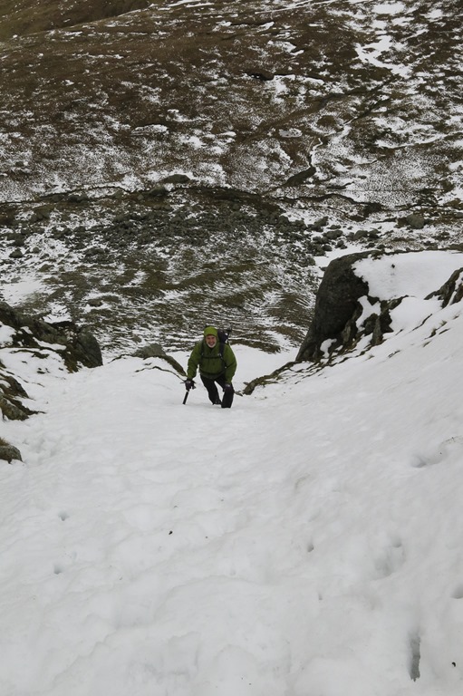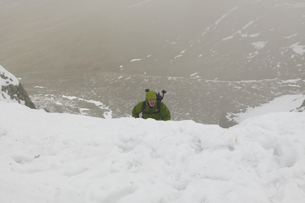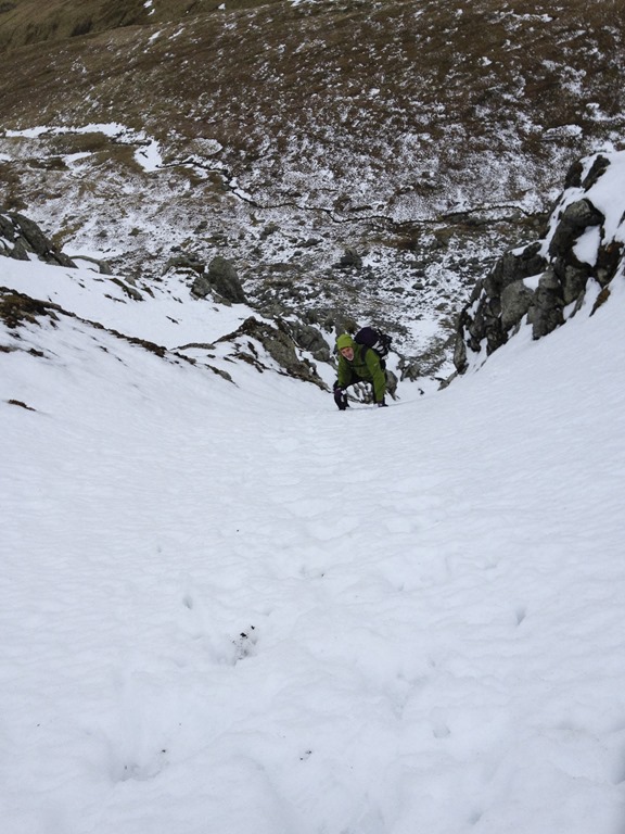 Second day in a row on Helvellyn this time from the West. We walked up to Brown Cove crags and climbed up Central Gully Left Branch. The snow was pretty soft and as we got to the top it was pretty gusty.
