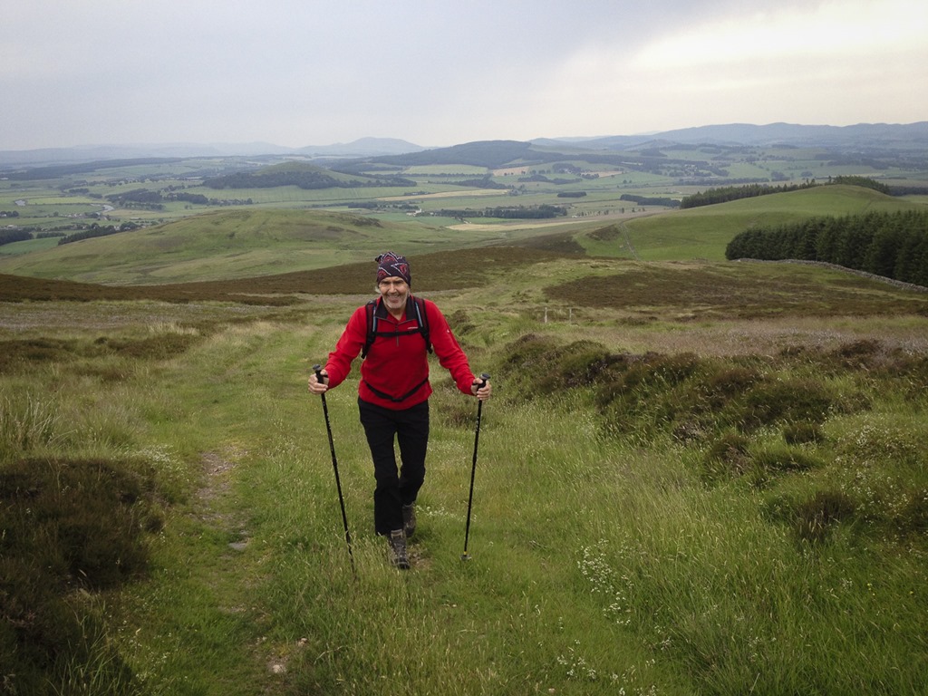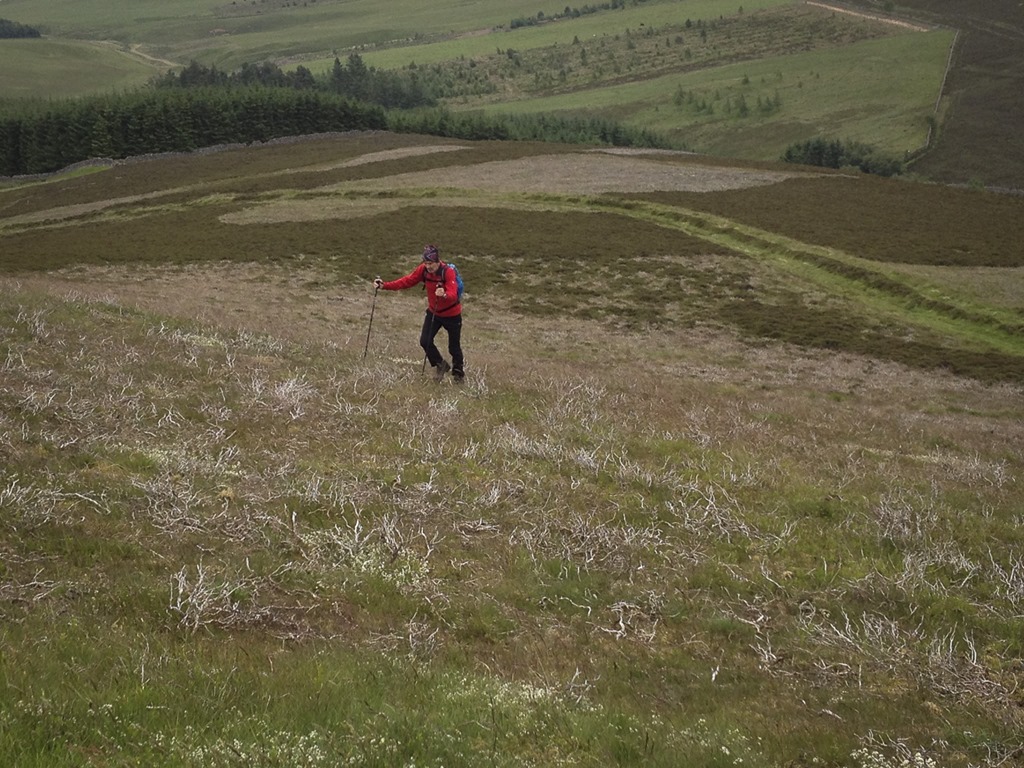 It was very windy but a pleasant walk up to Tinto and Totherin Hill but it was a very contrived way down a very steep slope and a road walk back to the van.