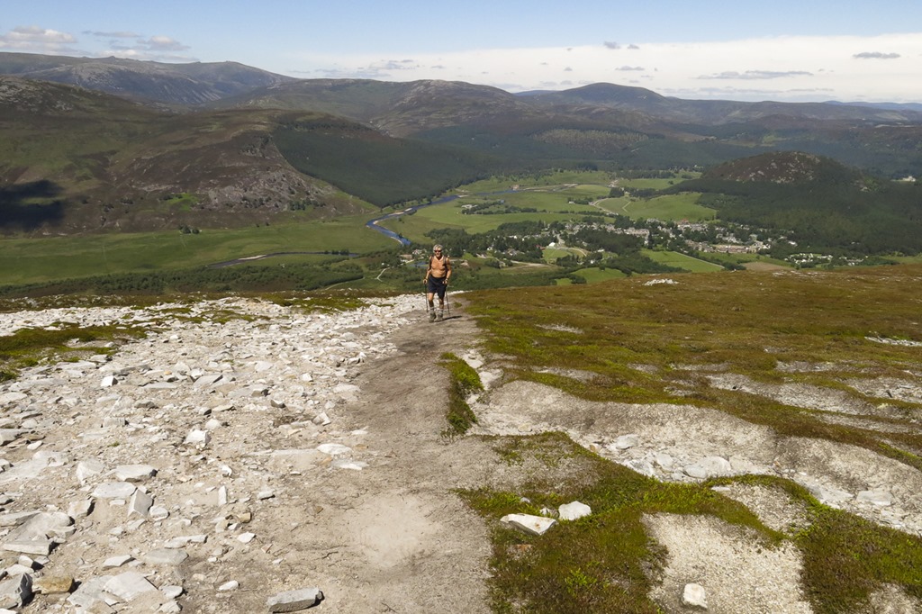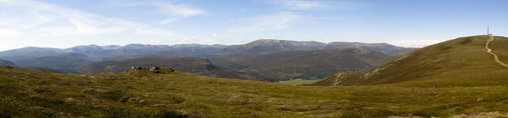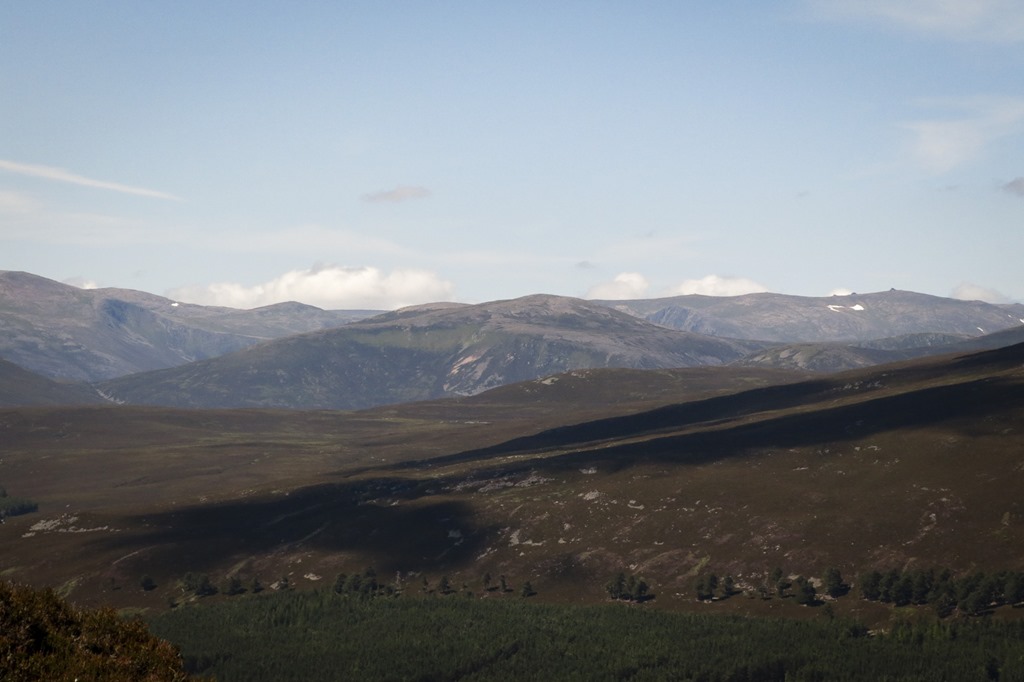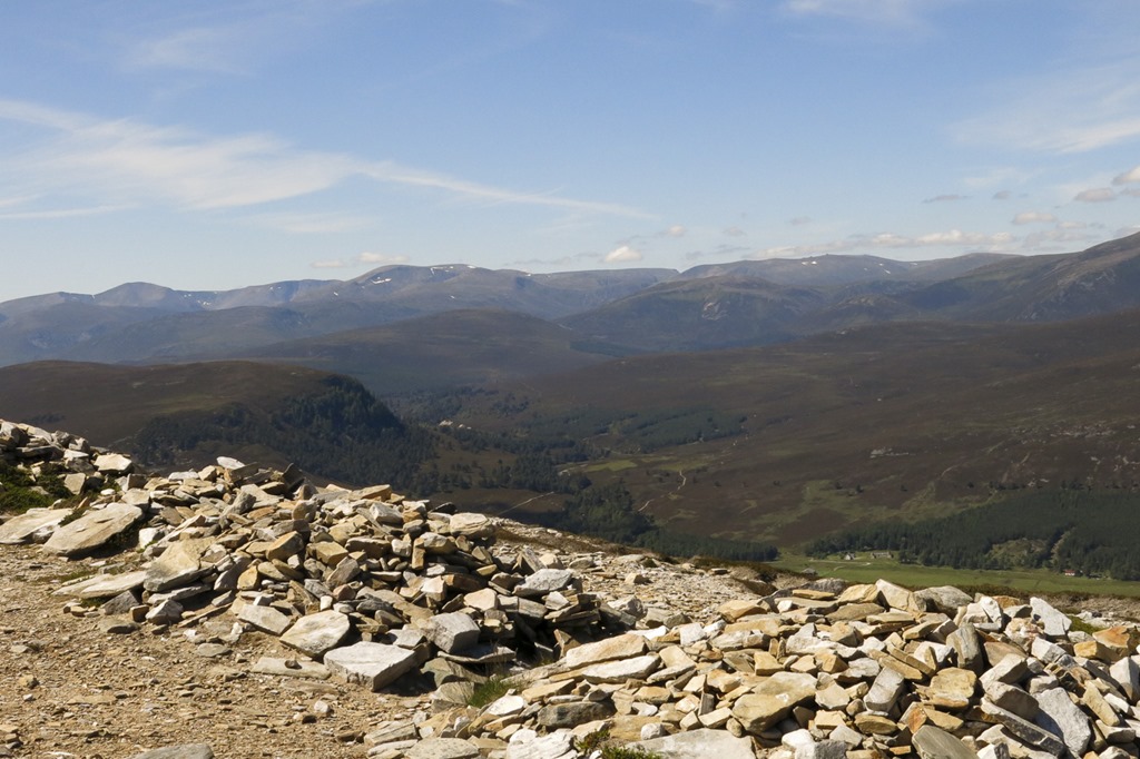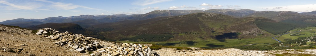 We were staying in Ballater at the campsite and had a lovely stroll up Morrone beautiful views to the Cairngorms we did identify some of the peaks but I cant remember what they are now!