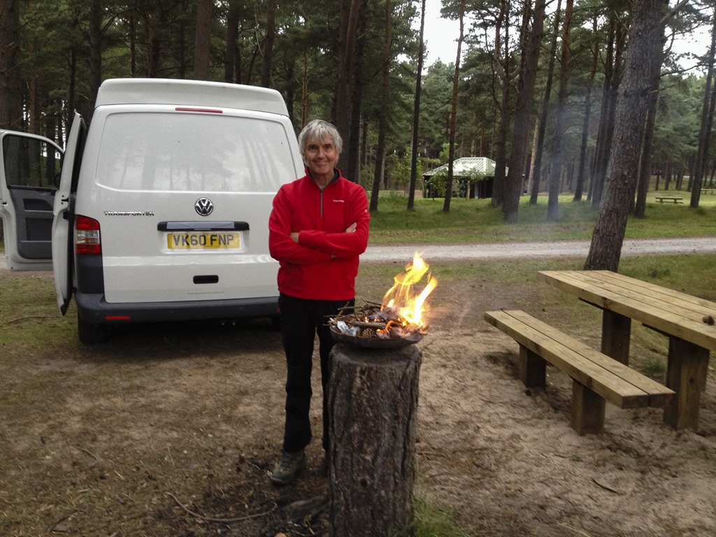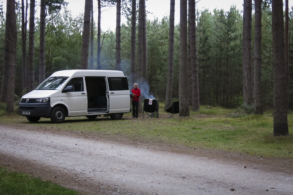 After a walk along the coast from Hopeman we found a treasure of a parking place at in the forest at Roseisle