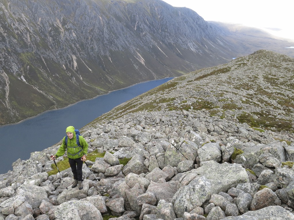 We set off from home on our bikes and cycled up Glean Einich. It was a lot further than we remembered but eventually we got to the start of the path up to Braeriach. We were running out of daylight a bit but decided to go up to the scramble on the west ridge of coire Dhondail. (Grade 1) it was a little loose a jumble of rocks really. Once at the top we did a small circuit and came down the path which lead up from up to the coire. We got back home at about 5.30 so we’re out about 8 hours…not bad! ![]()