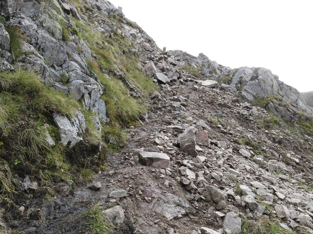 There has been a lot of rock falls lately due to the wet weather. Here is signs of recent rock falls obliterating the path.![]()