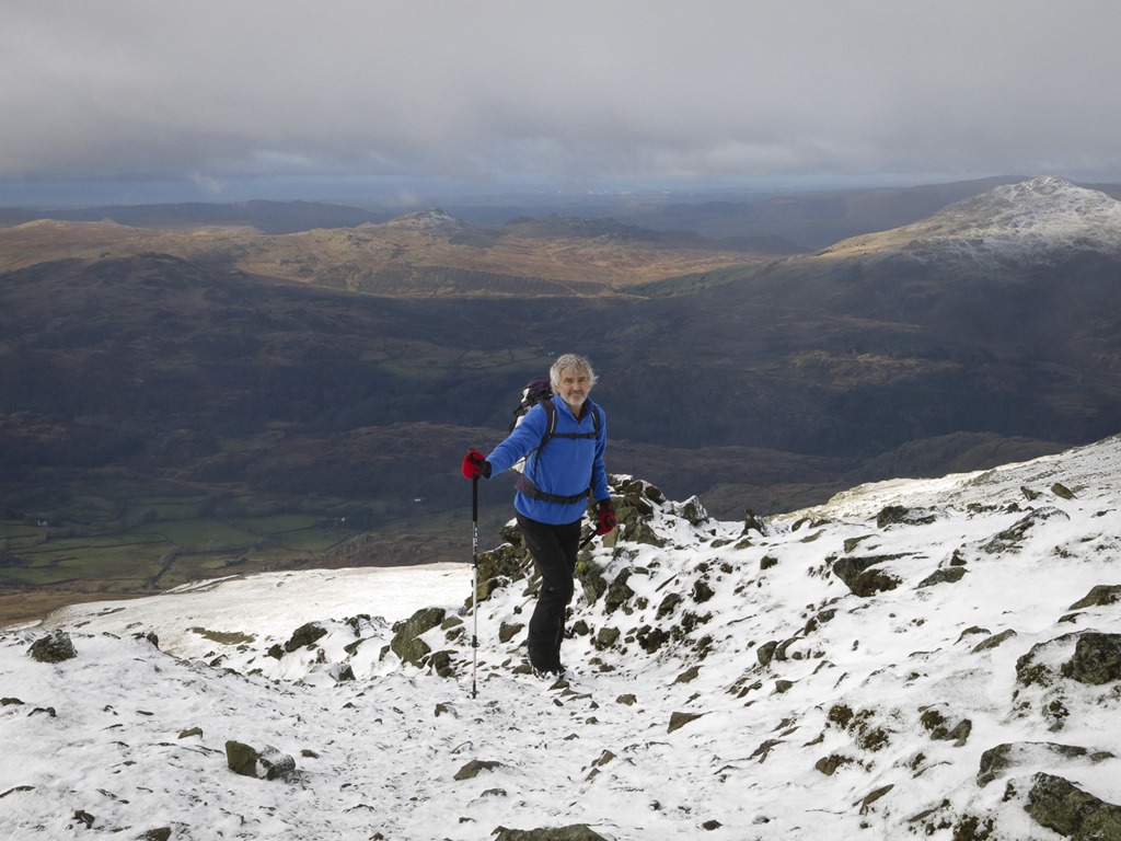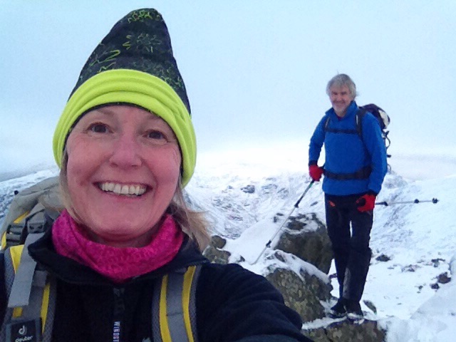 We parked up at the car park at the beginning of the Walna Scar road and carried on walking up the road to the col and then headed up Brown Pike and went along the ridge to Dow Crag. the light was lovely and sunny. As we got to Dow Crag it got a bit claggy and a bit snowy. fantastic day we wore our stiff boots with the yeti gaiters. After the walk we headed back to kendal for a McDonalds. It was nice to be back on the lakeland fells.