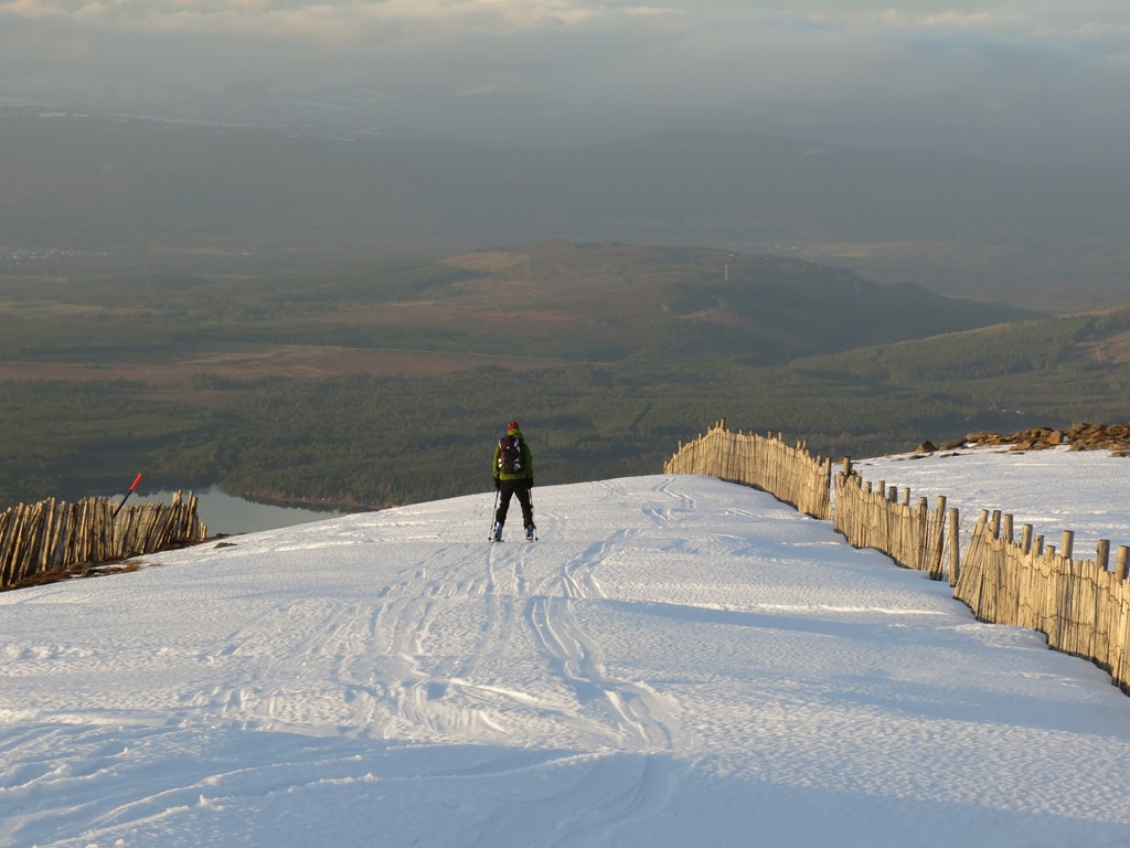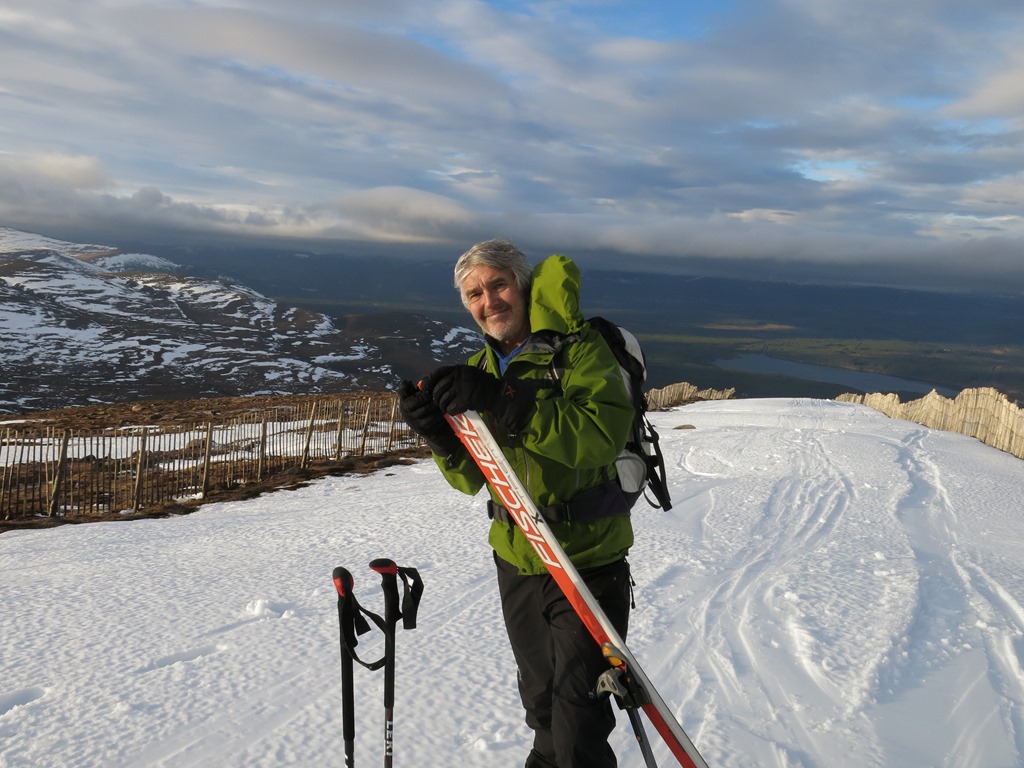 There was a fair bit if snow lost overnight and although the forecast was for winds we decided to go out and see what is was like. We drove up to the ciste car park and set carrying our skis (a first) to the beginning of the snow. We skinned up to towards the top of the day lodge and then continued up the M2 to the ptarmigan. Then we skied back down. Great fun going down but hard work going up! The wind never got up at all. I wore my new thermals and woollen fleece and was nice and toasty