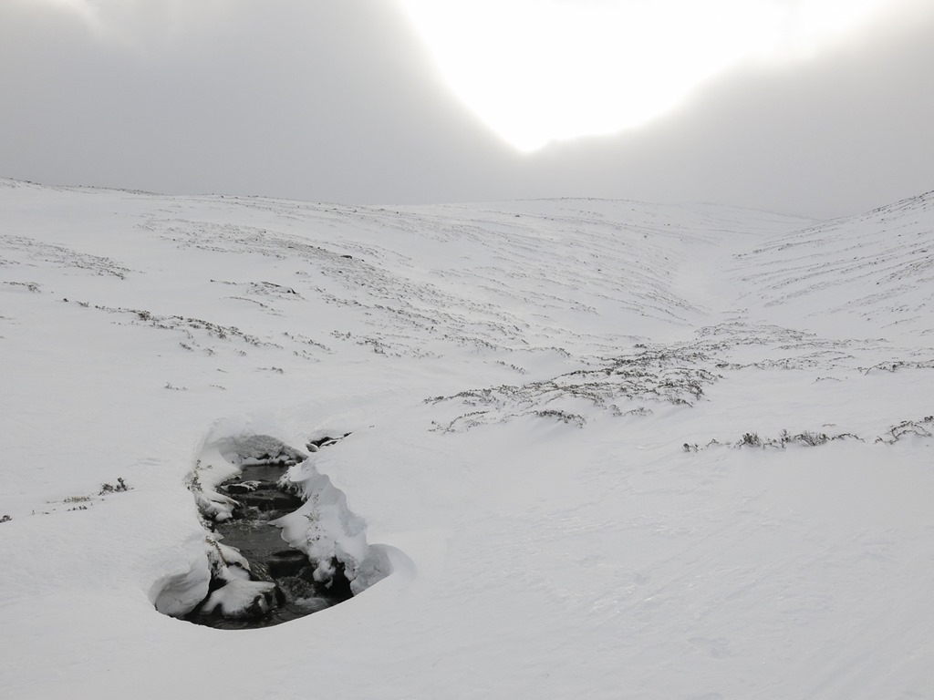 Looking up Lurcher’s Gully and towards Miadan Creag ab Leth-choin![]()