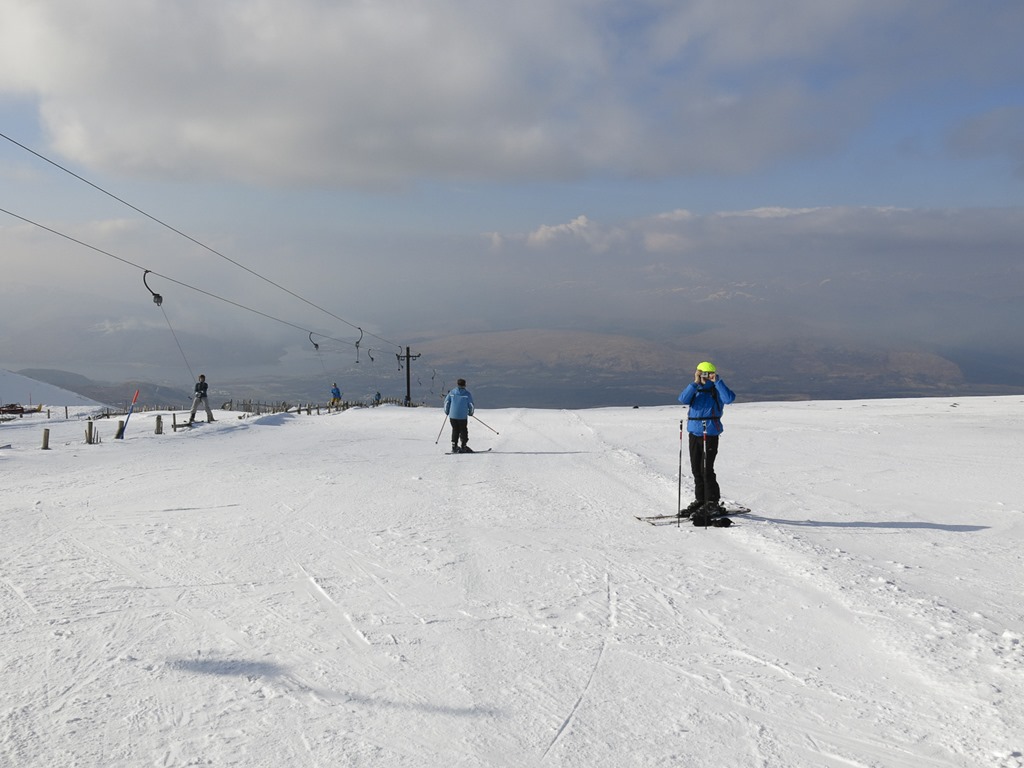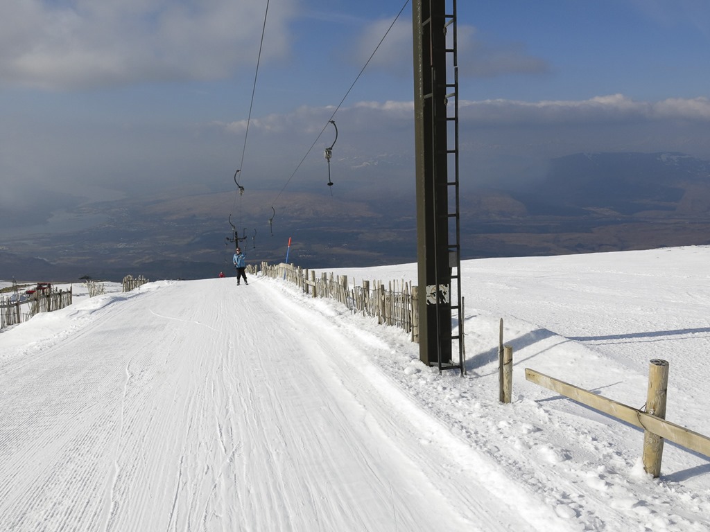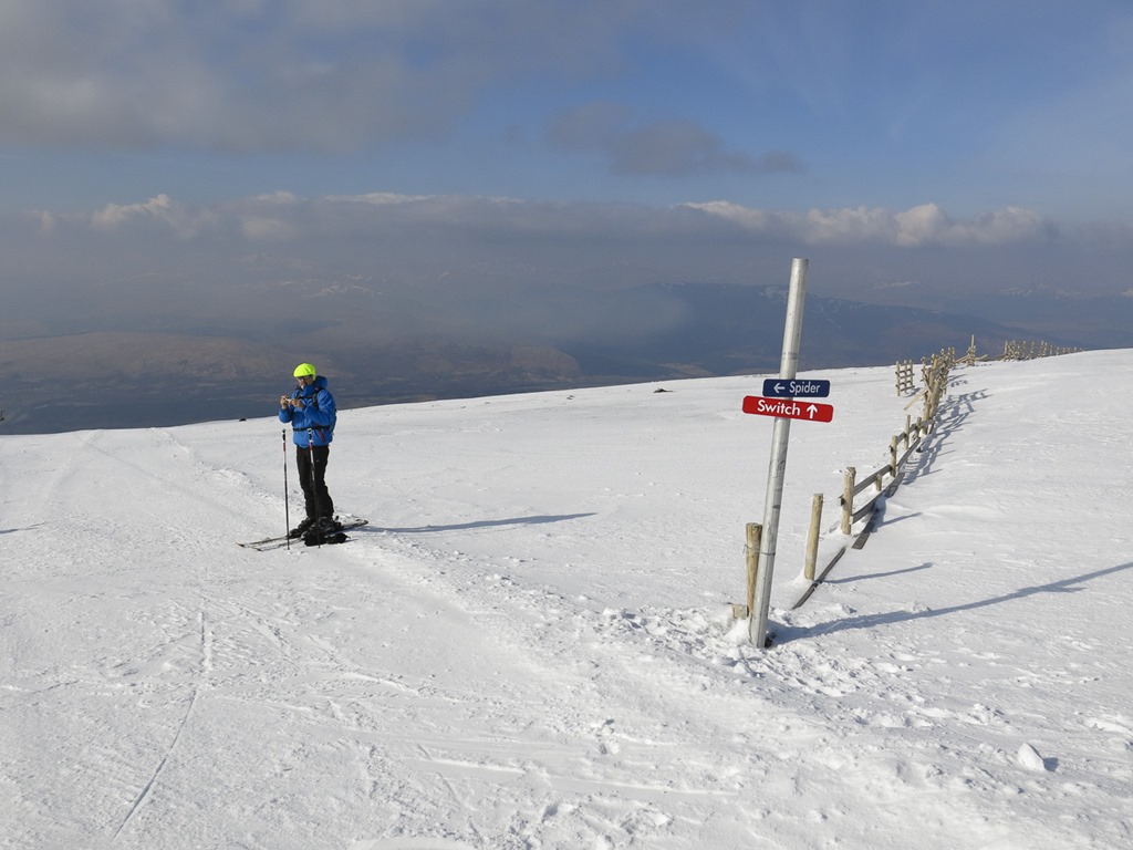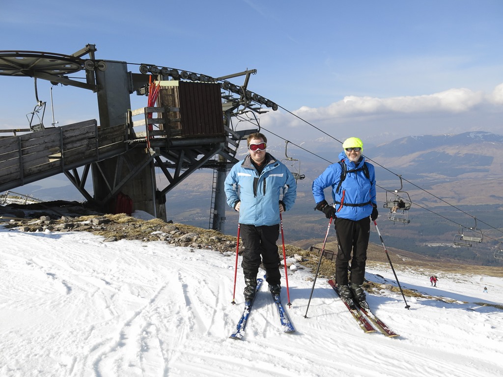 Second day of Joe’s visit and we thought we would head to Nevis Range for a change. It was a lovely blue bird day with no wind at all. It was spring snow at the bottom of the runs and a mixture of scraped patches and snow on the upper runs. We had never been right up the top of the mountain before and the view of the Ben was amazing especially with the sunlight shining on the snow. We went down the goose it was a bit scraped at the top but it would be amazing when in condition. Joe did well and enjoyed himself. We had a look at the back carries and definitely need to go back. Got the name and number of the manager who does the buying for the shop.