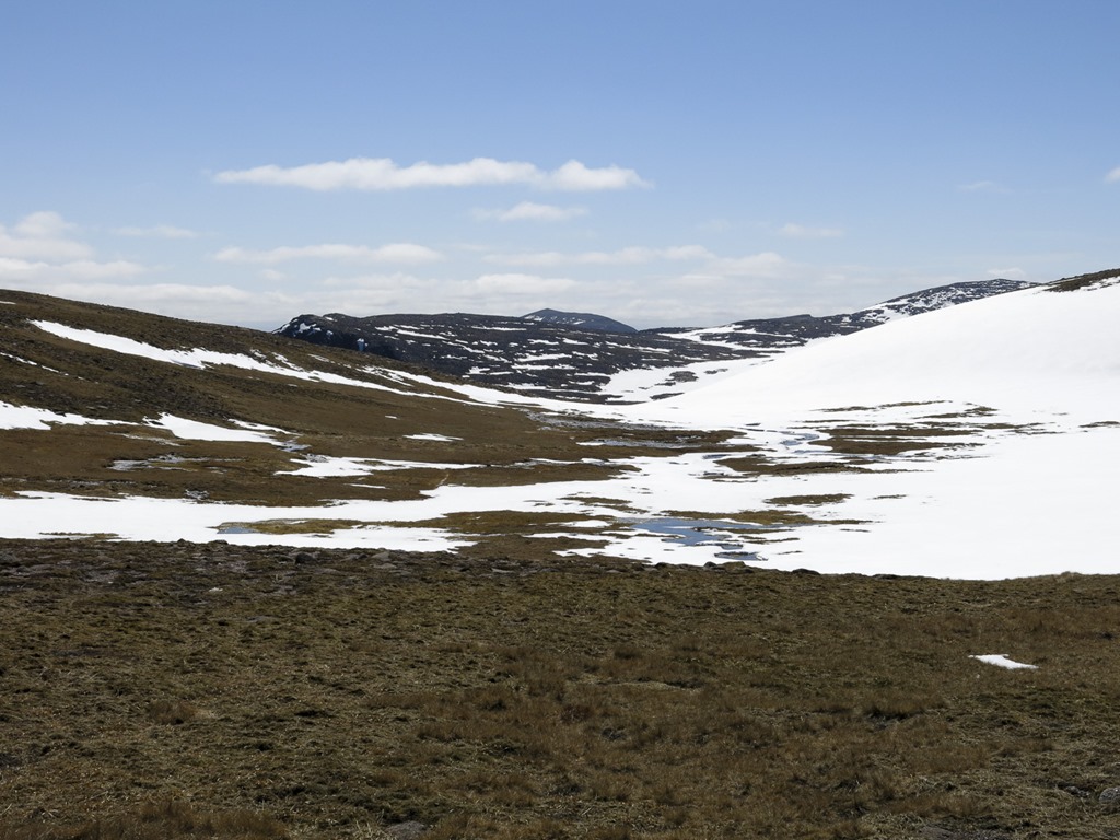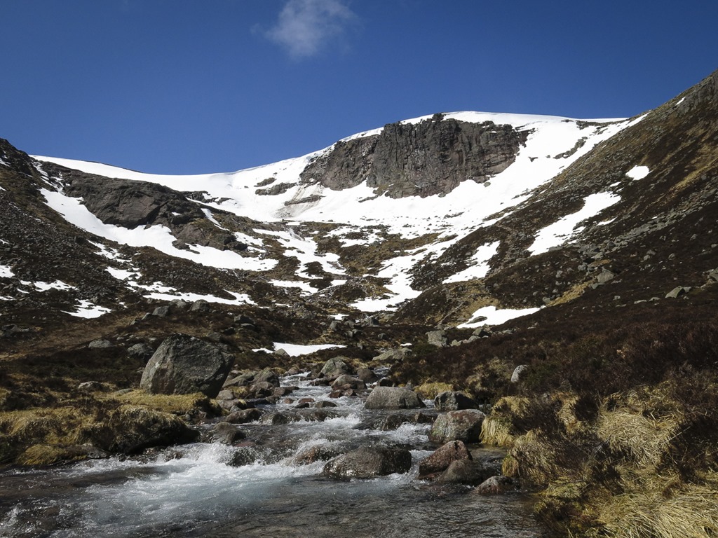 Looking down coire Domhain toweards Shelter Crag and BenMacdui