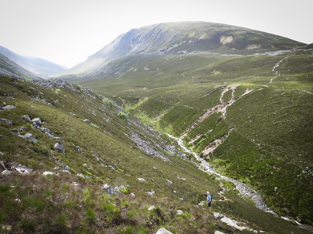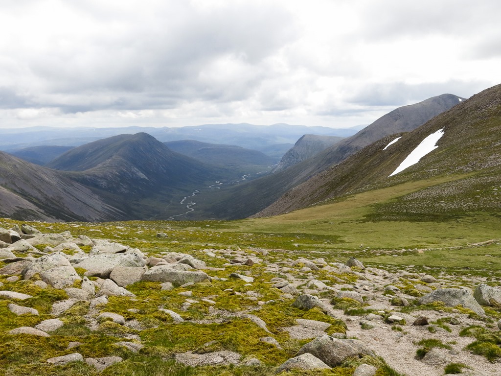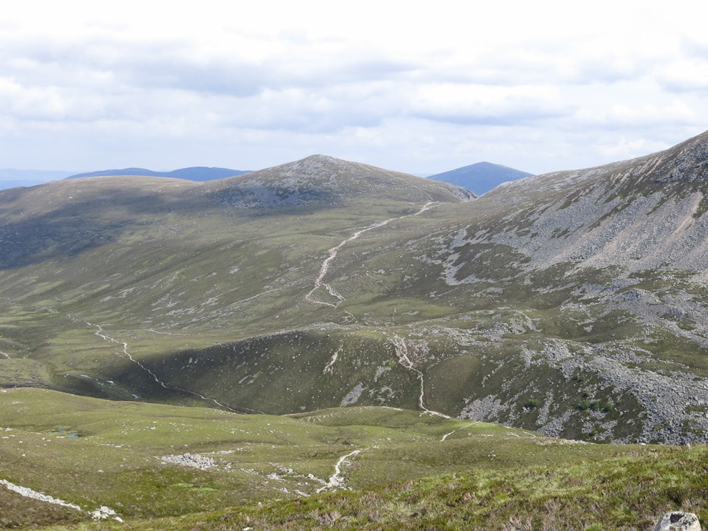 Looking back into Lairig Ghru and the path from the Chalamain Gap