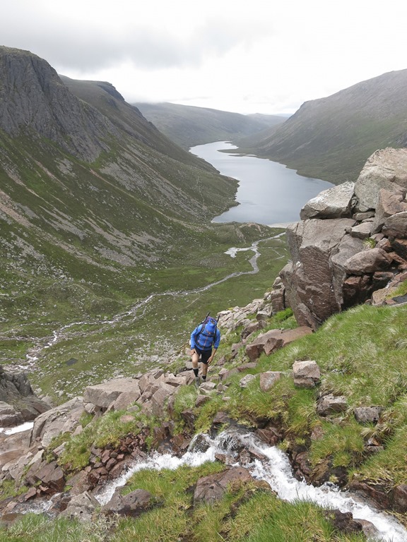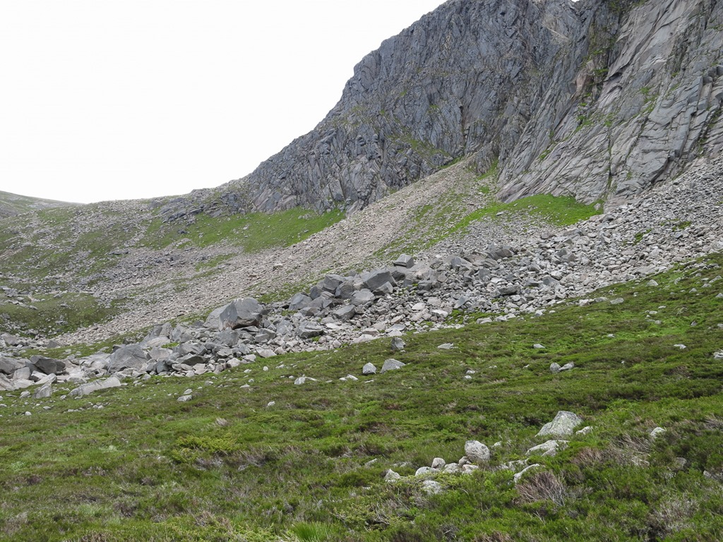 Looking down Coire Raibert to Shelter Stone Crags