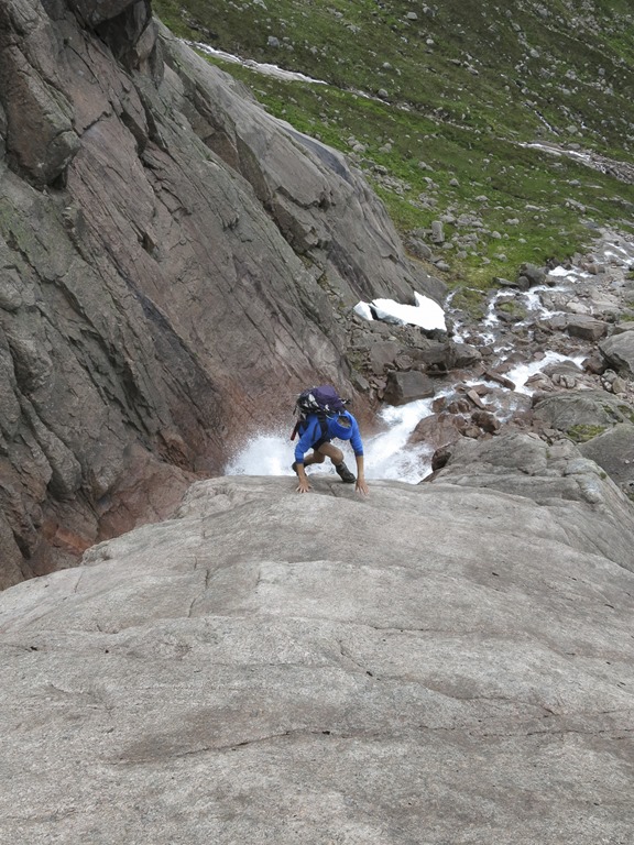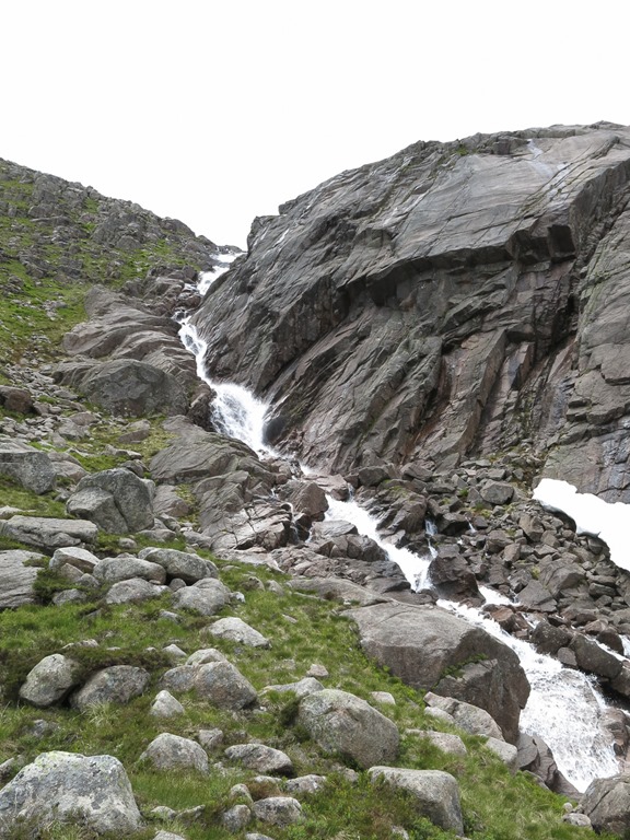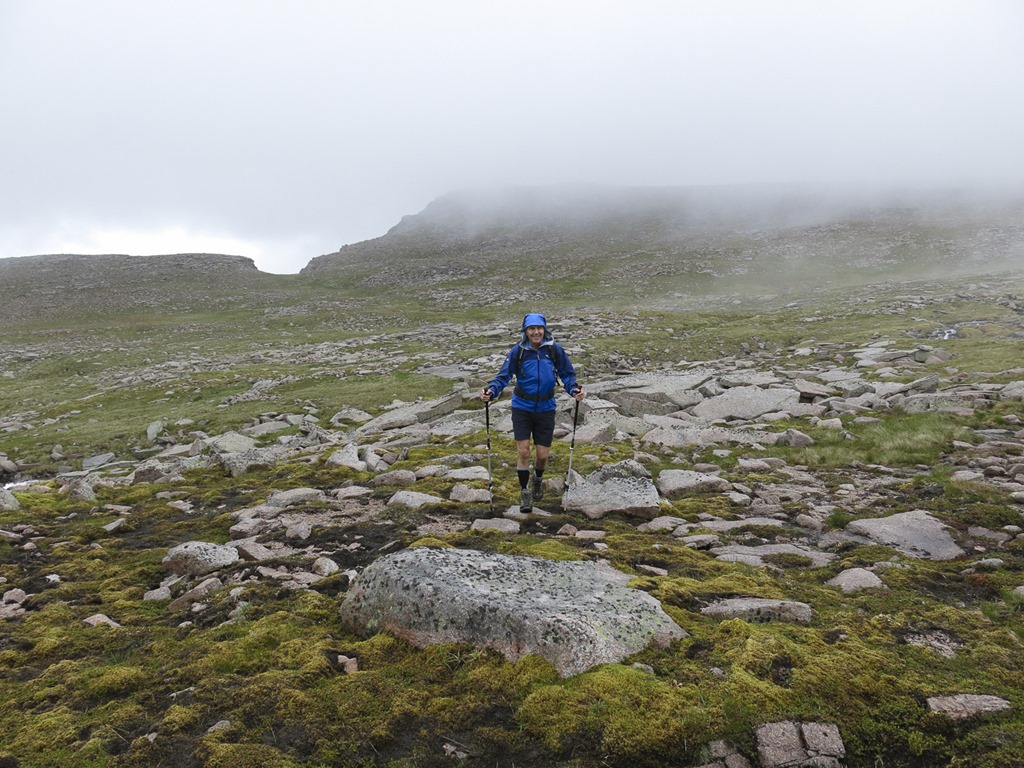 This was a day that turned out to be wetter than expected! We went up to Coire an t-Sneachda and up the goat track over the top and down to the shelter stone. The scramble was the best Gill scramble ever it was a shame that the top half was still covered in snow. We were going to go to the top of Ben Macdui but as it started raining and the clagg had settled we decided to head back. We had a little trouble location the path at the ridge but made it ok. We then went back down the goat track and took the path that traverses up to the fiacaill ridge and down the ski slopes to have a look at the new lift that will replace Sheila. And back to the car. Home and then back up to the car park to get the sticks and Rogers gloves! Ha ha