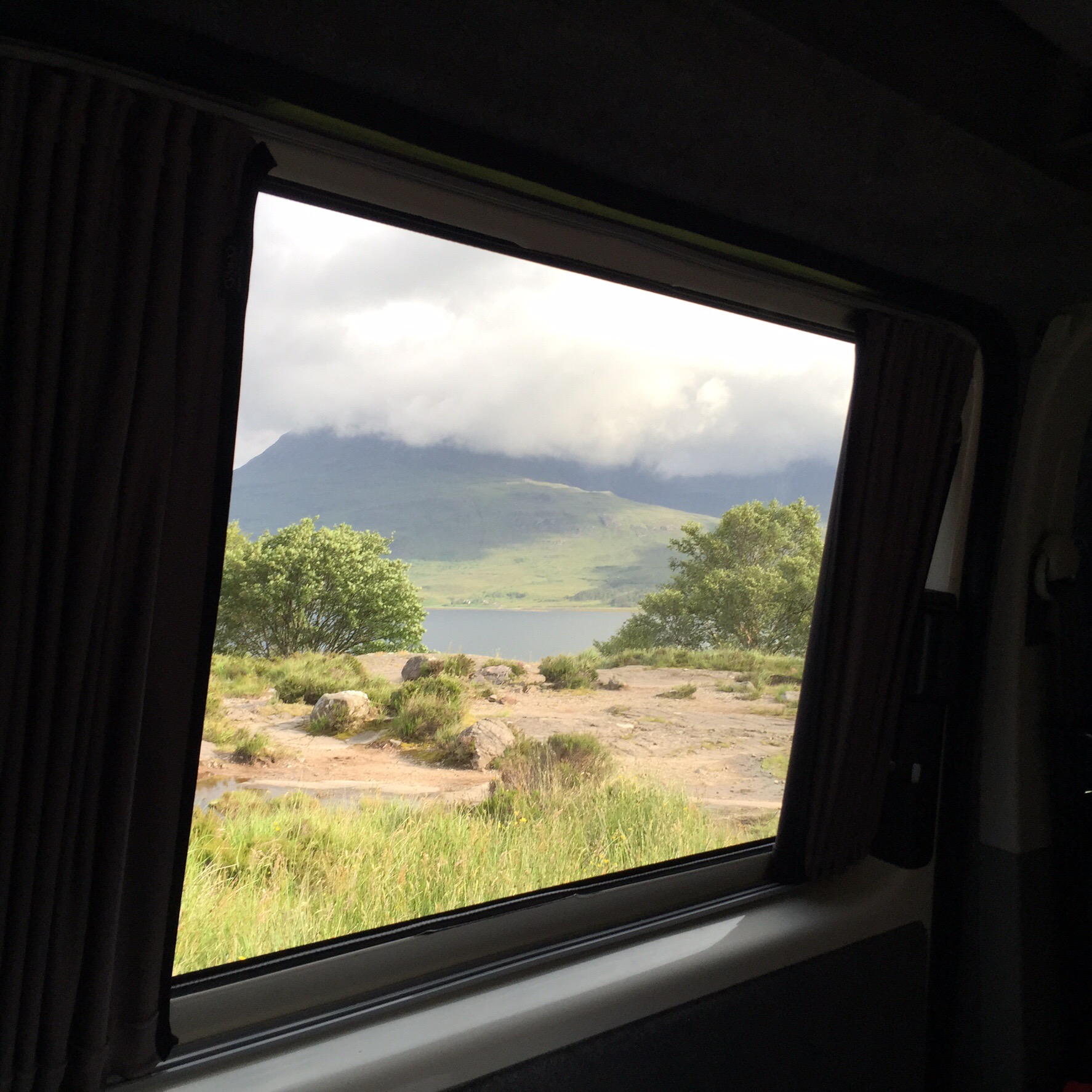 We had a couple of nights away in the van. I had a photo shoot with a couple from California at Eilean Donan Castle in the pouring rain! The next day we went up towards loch Carron to delive work to the patterns of light gallery. We thought we might head up Sgurr a’Gharaidh but typically this year the weather was not playing. As we got up to the start the rain was pretty persistent, we went at had a coffee at a lovely little cafe near the start of the Bealach na ba road. As luck would have it it started to brighten up and so we went for it. We followed a track round and up the valley very wet and boggy under foot but as we turned and followed a stream up to the col the ground got much steeper and drier. The top was not a place to be lost in the mist. So was just as well it was not misty! We saw a nest on the way down with broken eggs in. Luckily it stayed dry. After another night in the van with a lovely view we went home. A nice wee break.