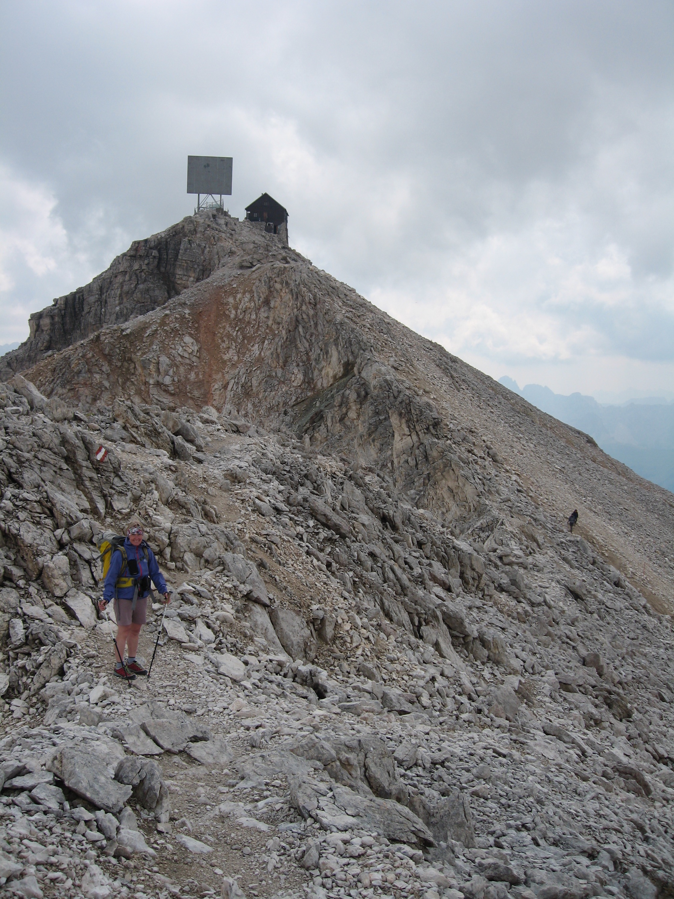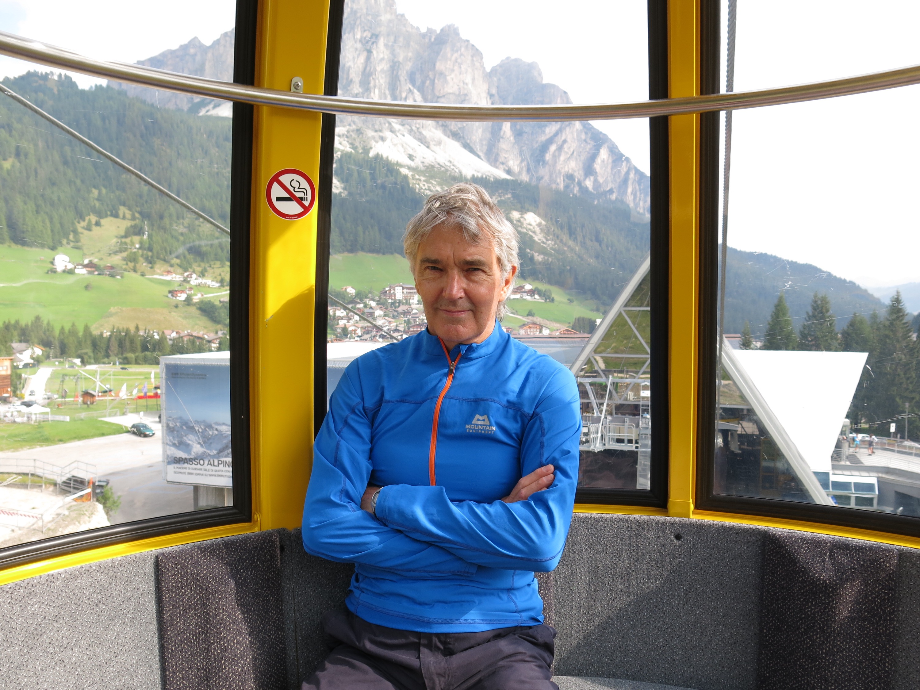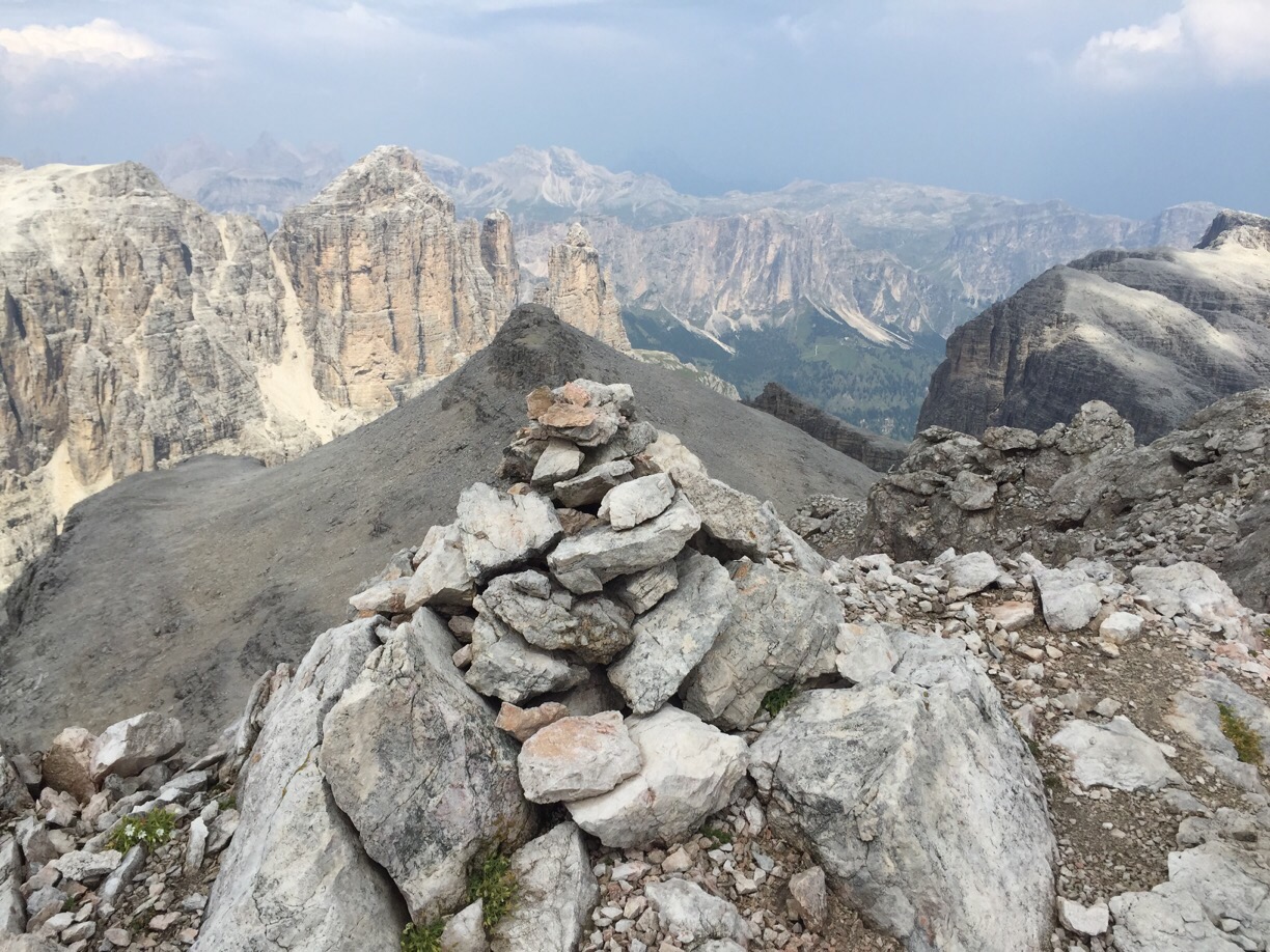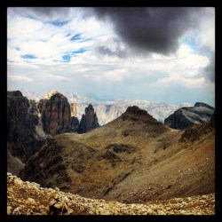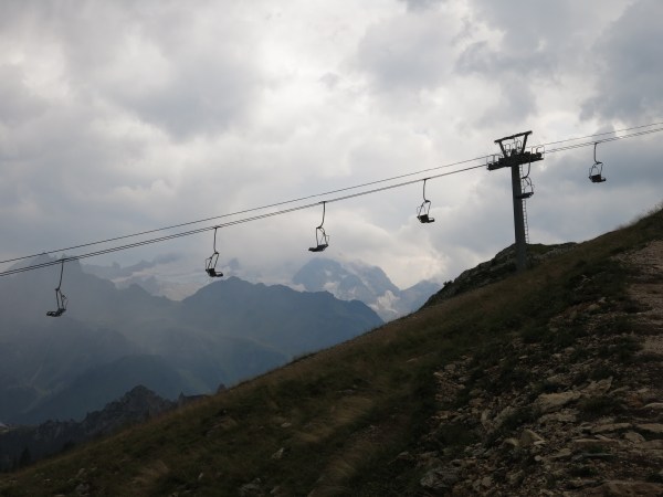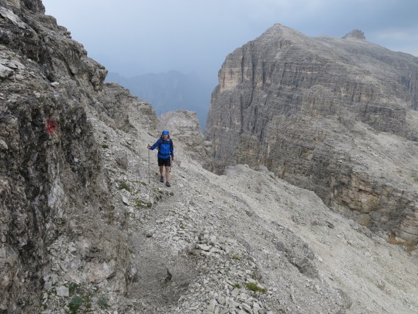 Another early for us stat with breakfast at eight. We then sorted our self out and set of on foot for the cable car Boe. We were going up the cable car and then the Vallon chair lift. At the top we traversed round the basin at first no one was going our way and I was a little worried about the bridge still being there. We had a little trouble locating the star but another party came up behind us who headed straight for it. That helped! The route was fantastic a lovely scramble to the bridge and after a bit more challenging. At the top the heavens opened for a while it was much colder rain than we were expecting and then hail. We could hear thunder. The quickest route back involved an other via feratta which we were not to sure about! Luckily it was just a shower and the sun came out. We continued up to Piz Boe going over Piz Lago Gelato 3,009m on the way. At the top we went into the refuggio and had minestrone soup with sausage. Lovely. It was at this point that I realised that we had only bought single lift tickets instead of return! But did we panic no we did not. We walked back to the refuggio near the chair lift. Lost of thunder and lightening but no rain until later. We walked down to the cable car and bought no tickets for that. A good decision we thought as we would still have been walking down even after we had finished our evening meal. Of pizza and salad and a nice beer. Excellent day