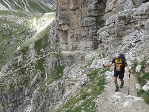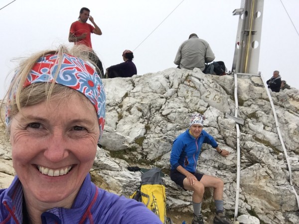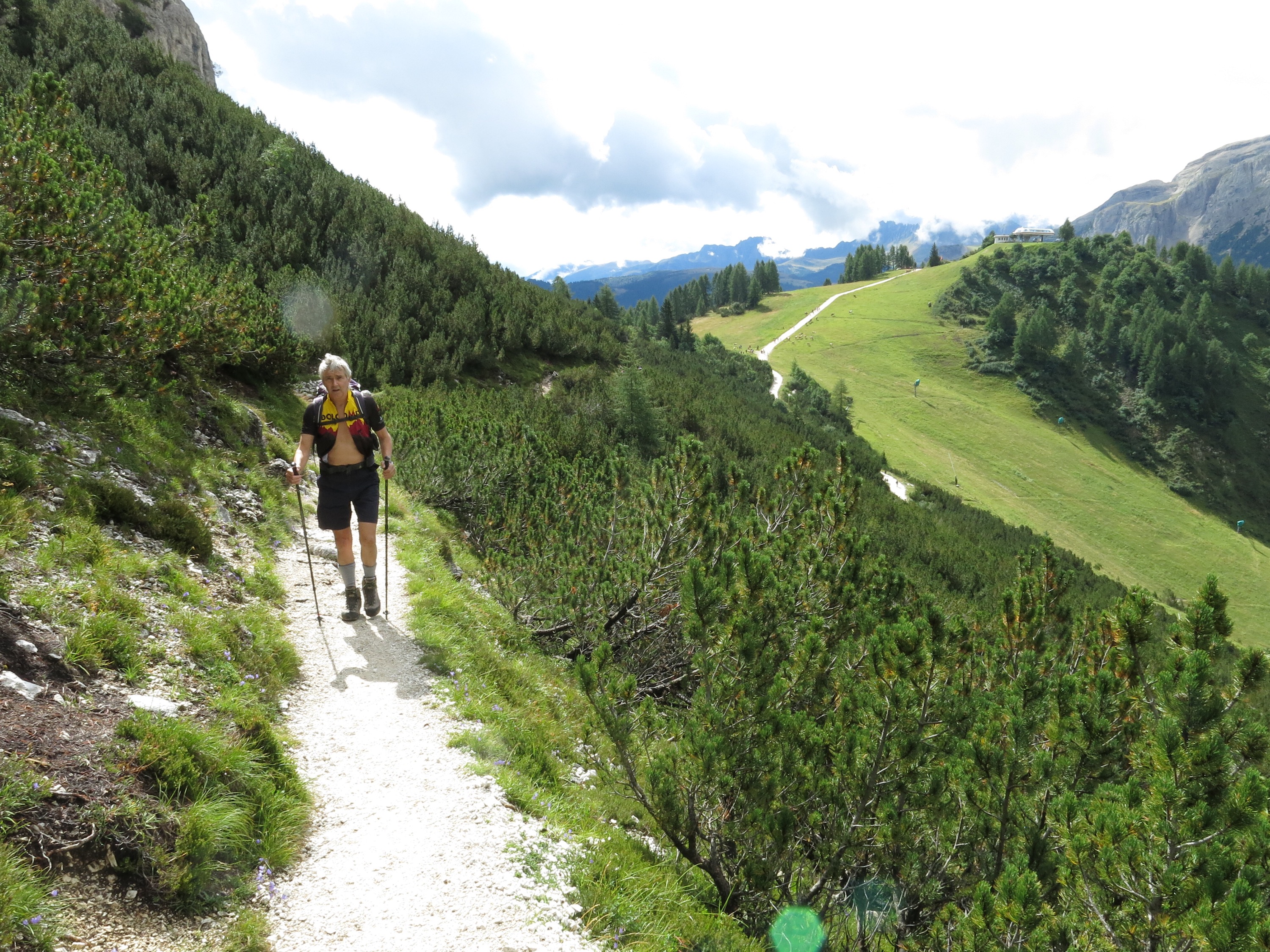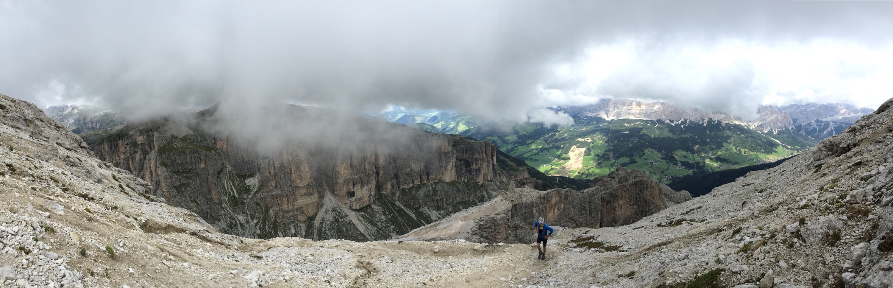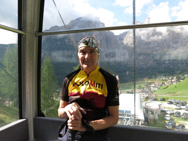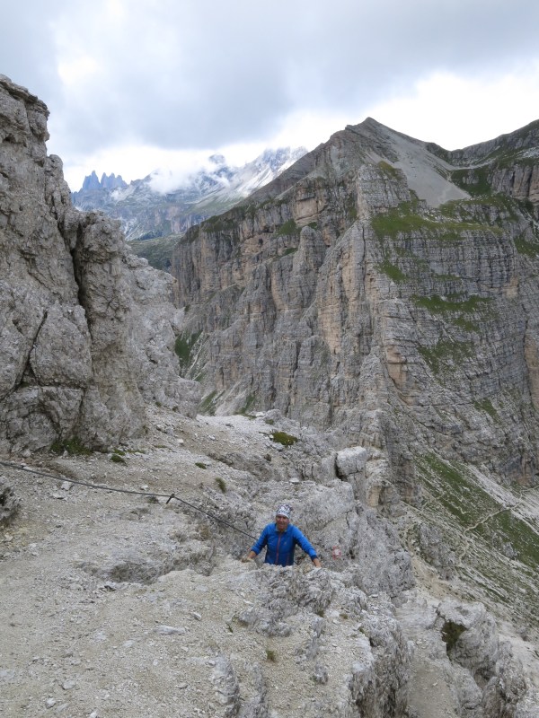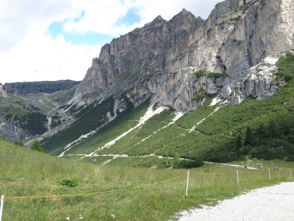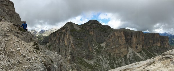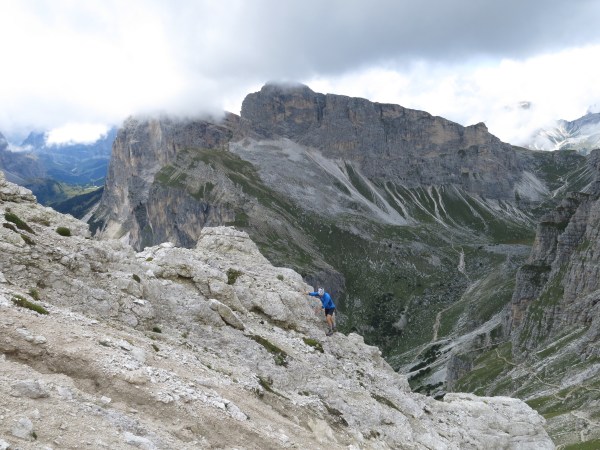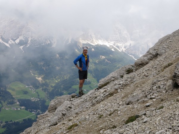 Today we decided to go up Sassongher. There is a via feratta which is described as more like a scramble or a protected walk with a few wires in place. We went up the cable car from Colfosco to Col Pradat. The cafe at the top was amazing with fusions and furs on the seats. At that point the sun was out and we dalyed a bit in the sun. It has been a bit lacking this week. The then traversed round to the ridge walked up to the col and the pen the final push to the top. It did cloud over but we were lucky enough to get a clear view on the top. We had a bit of rain later but we were dry when we got back to the car.
