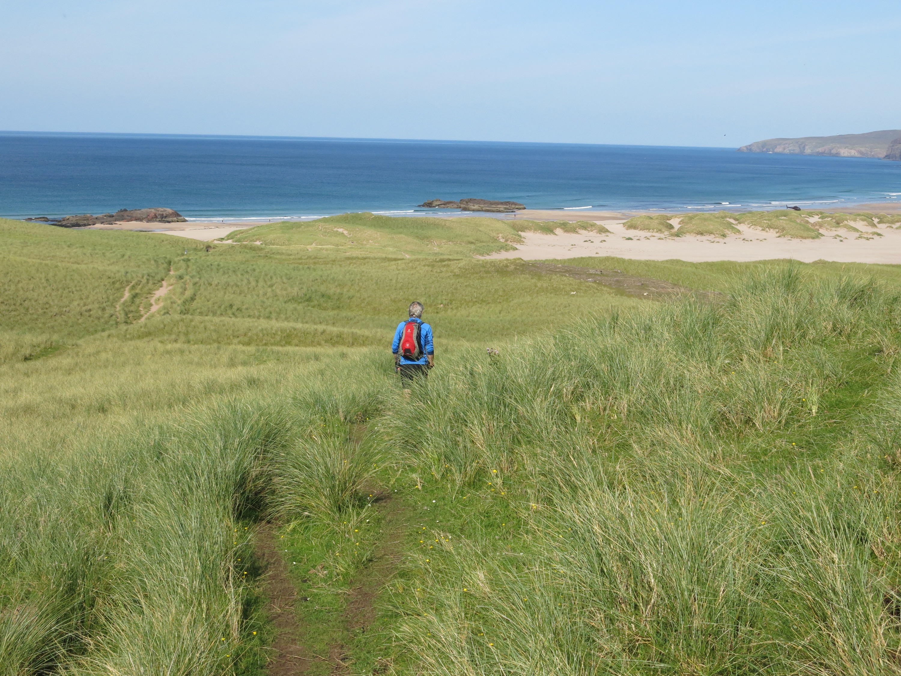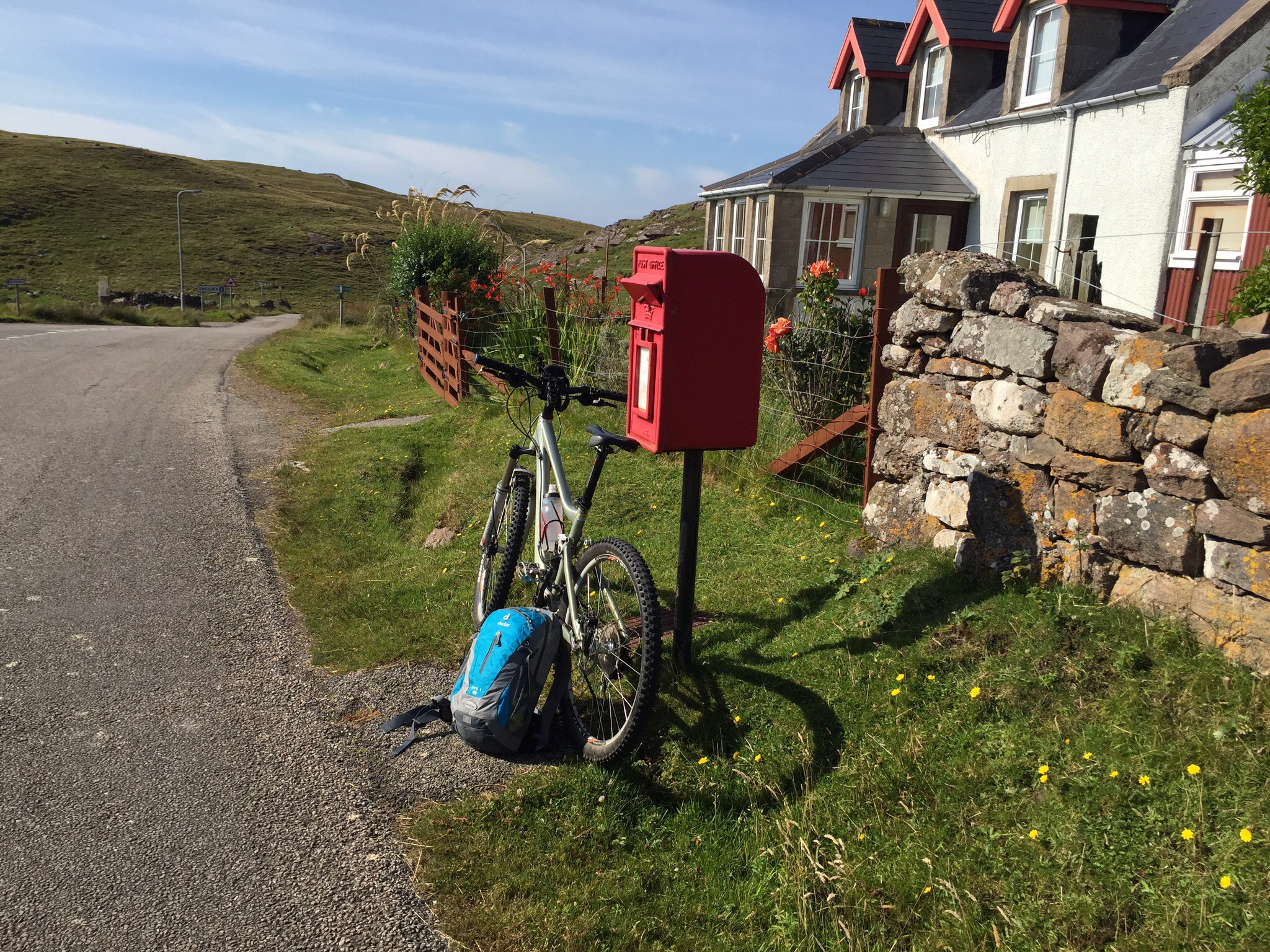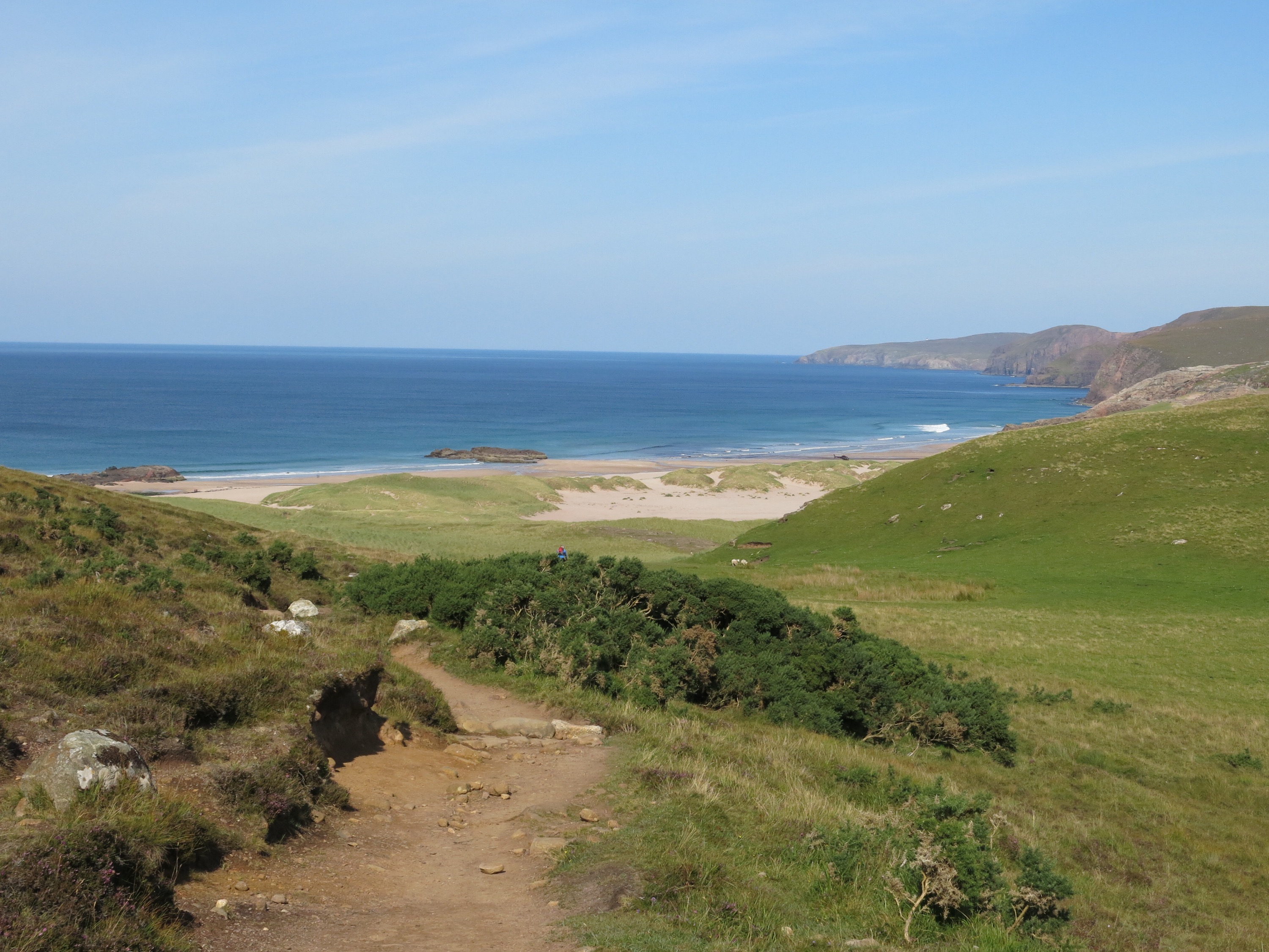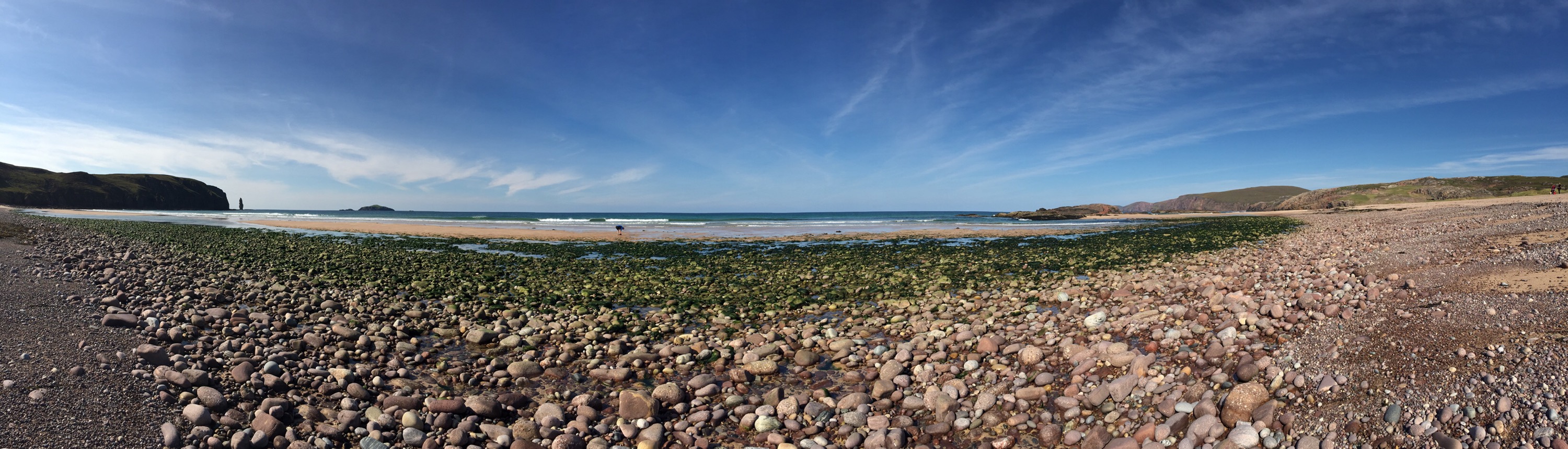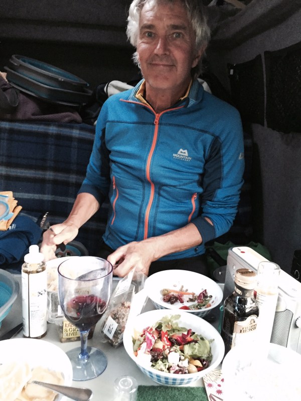 We set of last night after my wedding at the Big Husky Lodge. Stopped at Lairg for tea and saw Chris Bonnington! After that we drove up the road and found a spot to stop. We had a bit of a midge evasion! Not what we expected but the new midge nets on the new sky light worked a treat. next morning we headed north and parked up at Droman Pier.