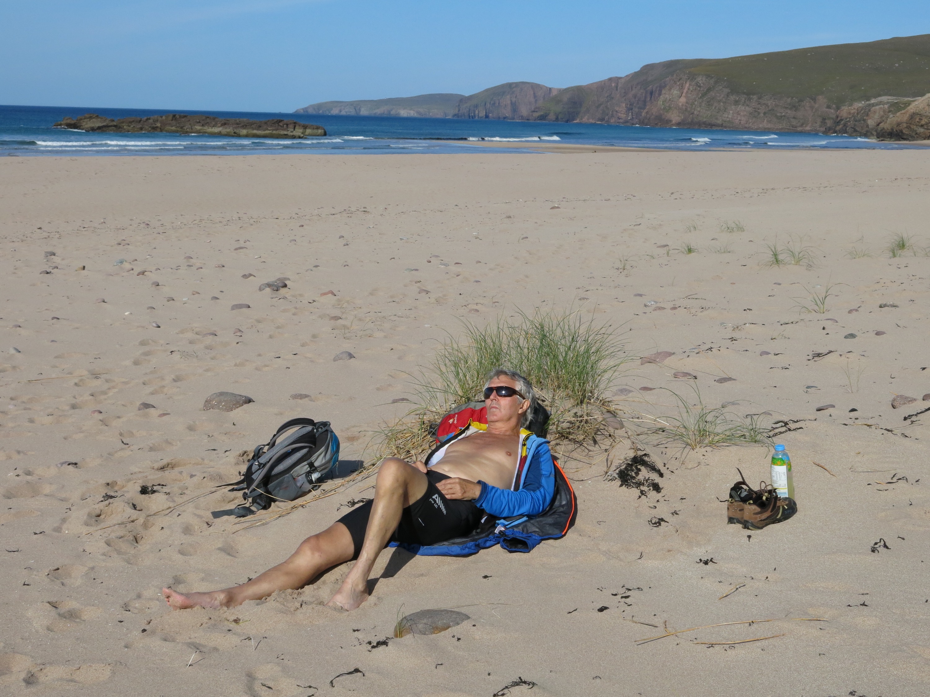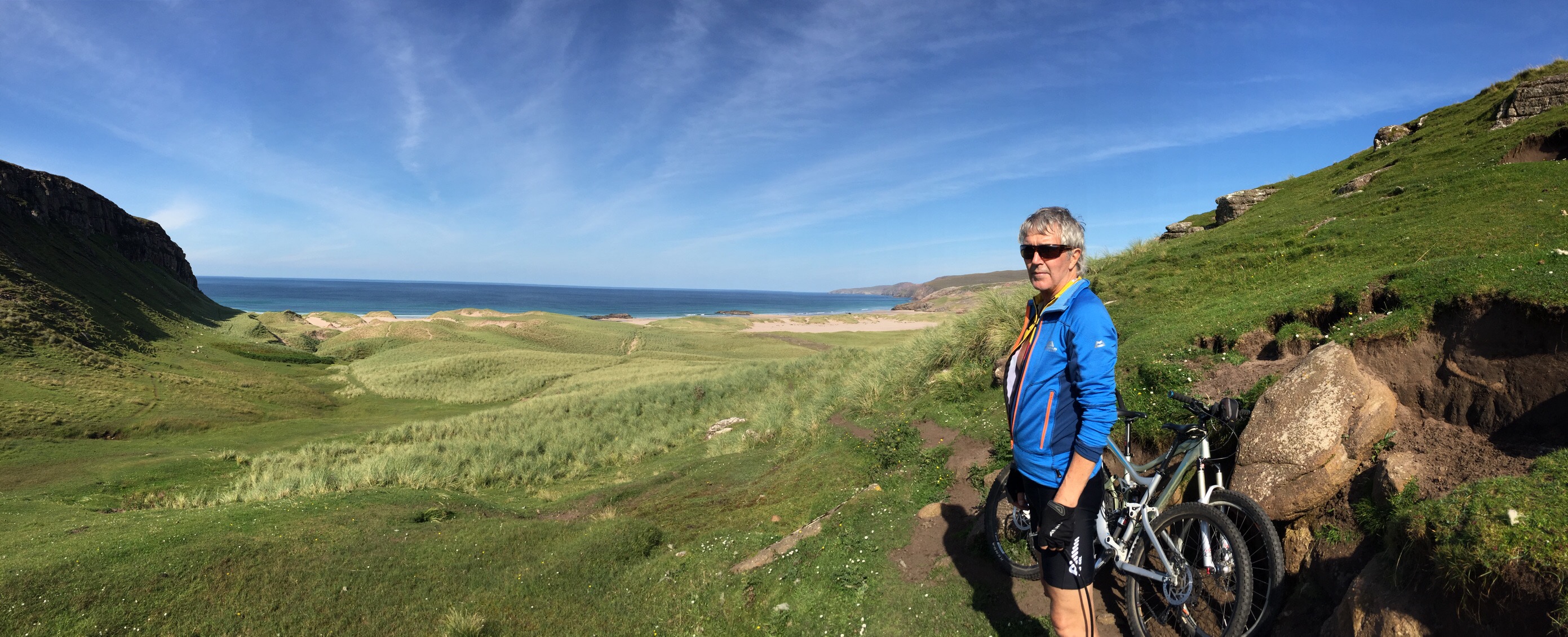 Although a walk in our book we decided to ride our bikes to Sandwood beach. It was a good track with a few drainage channels at the far end to hop over. Back at the van we had a great pasta meal and watched the sun go down. A fantastic day.