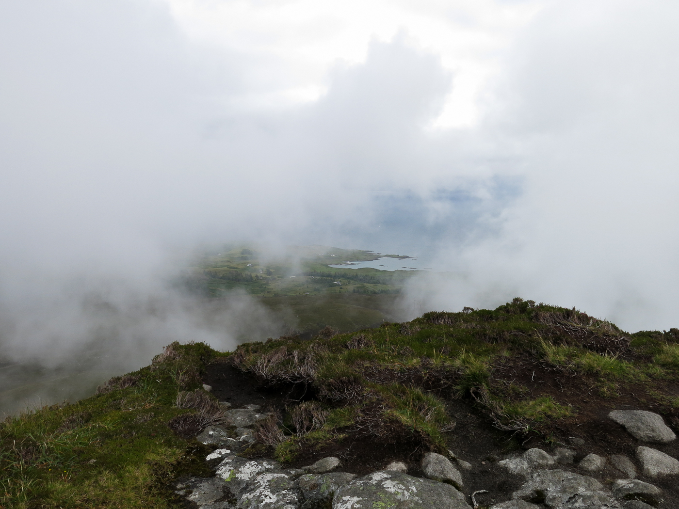 Jo-Anne and Peter were over from America and Sue booked a house in Mallaig for the week. Sam came up too. We had a nice week exploring the small islands. Here are some of the photos from our trip to Eigg and walk up an Sgurr. The mist just cleared a bit at at the top.