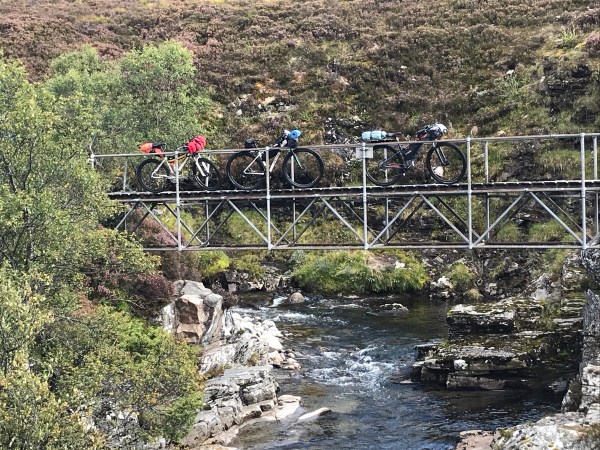 The weather has been kind to us. Only a few spots of rain and plenty of sun. Lots of river crossings places to swim and a long bit of single track. We med Duggie from landward on the trail with a film crew. We were filmed and interviewed by them. Mental. We set of at 10.45 and arrived at our camp at about 6pm. Lovely sunset, we all cooked together near an old bothy. Eventually cold and midges drove us to our tents. I am all snuggly now. So it will be an early night. And all down hill tomorrow.