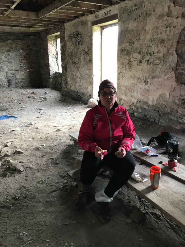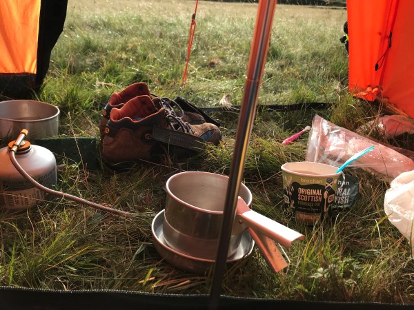Had a good night. A little cold at times. The tent was perfect but got a lot of condensation inside. Instant porridge in my tent then a cup of rather nice coffee that anne brought made for a good breakfast.