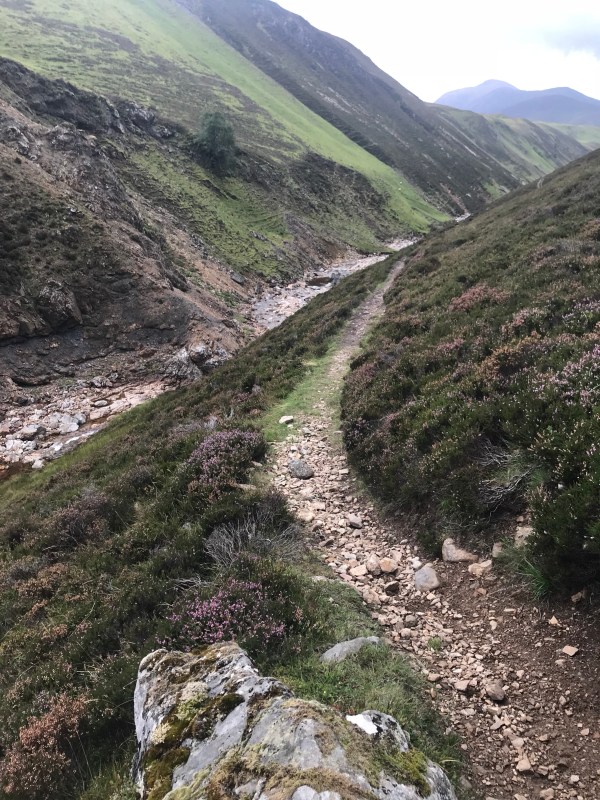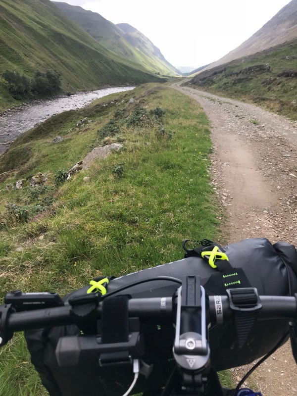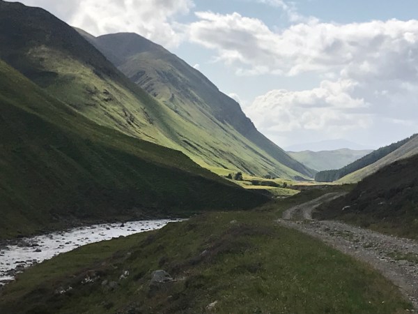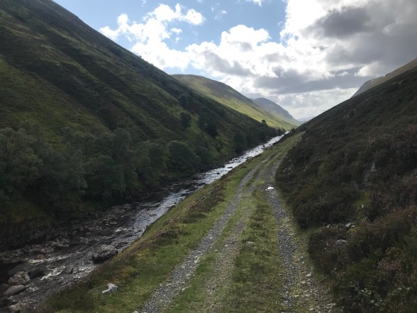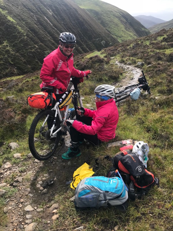 We set of at 9.30 and made good progress there were a couple of river crossings early on but I managed to hop across the stones. Helen had arranged to meet her man at 11.30 in Blair atholl and it was becoming clear that we would not make it. As she was deciding to go on ahead anne had a bit of a catastrophic mechanical with her bike. The derailleur snapped off her frame! In an attempt to break the chain and make it a fixed chain my multi tool got stuck