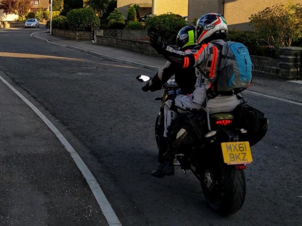 I must admit I was pretty apprehensive before I set off but I actually quite enjoyed the trip. It took a bit of getting used to leaning over round the corners. We first stopped at the wee tea room in Glenshee. Had a lovely platter of meats and cheeses with oat cakes and chutney. Our next stop was at the service station on the way to Edinburgh for a cup of tea and a stretch. We then called in at bod’s kennys friend and Halfords. We arrived at Micky and Jo’s at about 8pm. We are now enjoying a glass wine and waiting for a Indian takeaway.