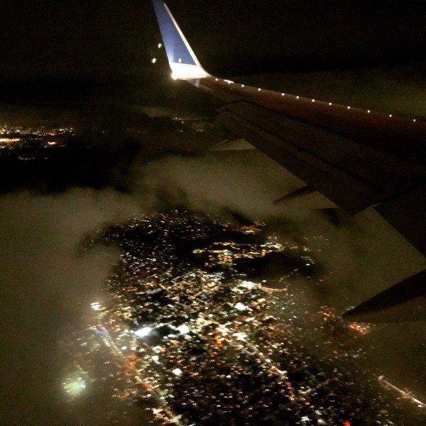 We had some amazing views of the prairies covered in snow and San Francisco lights from the plane. We were late getting into San Francisco due to a late take off and a strong head wind so we did get a little concerned that we might not make our last flight which we really wanted to do as it was New Zealand air.