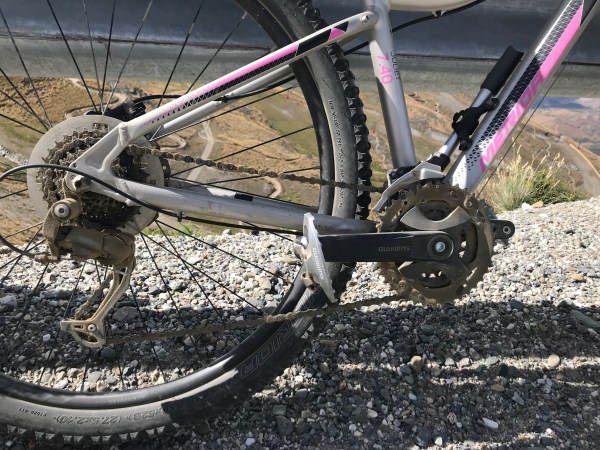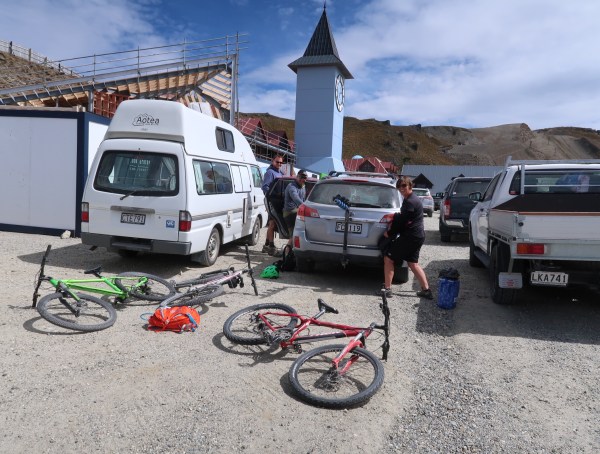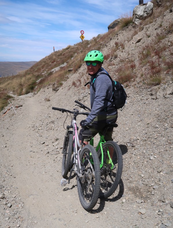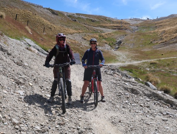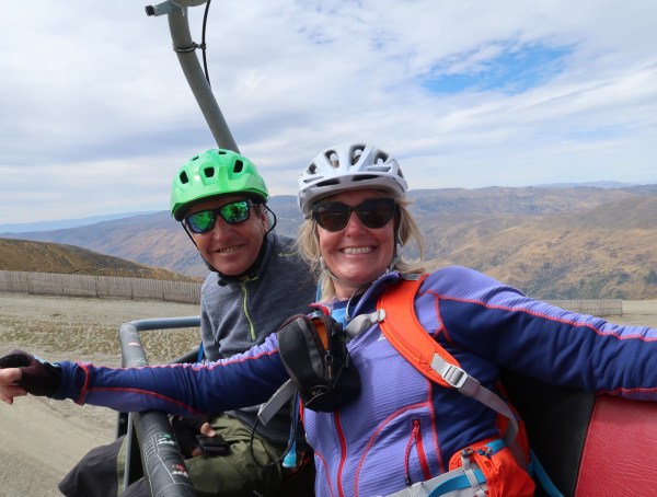 I have never been on a downhill trails before, so was very excited about it. Going u on the chair lift and then riding down…with no climbing back up. We went with friends from New Zealand. Moira was on a hard tail just like us. The others were on full suspension bikes with all the gear.