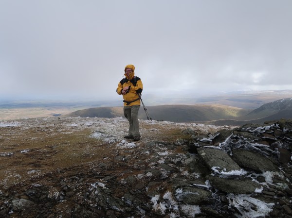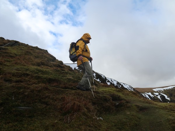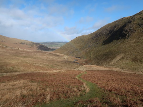 I was so looking forward to another day in the fells with joe and today didn’t disappoint. The forecast was for wind and a lowish cloud base so we decided to avoid the highest fells, instead we went for a lovely horse shoes that over looked Blencathra. The route started steeply through gorse but then eased as we went up the ridge to the first top. Spectacular views of Blencathra with snow on its top. We had lunch in the shelter – a good move and then headed down a steep slate rib towards a grassy rib. We saw rainbows forded a stream and had lots of chat. A lovely day…..legs a bit sore. I must get out more!