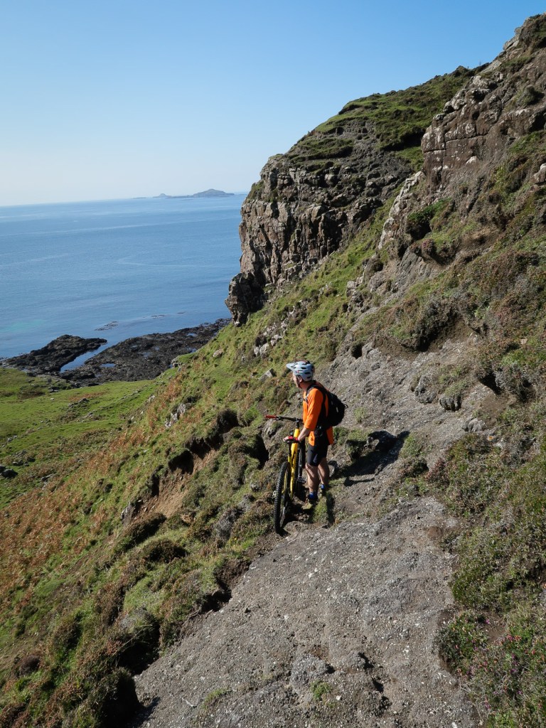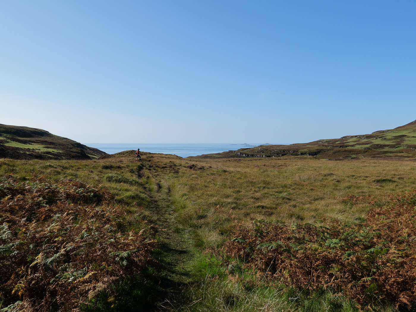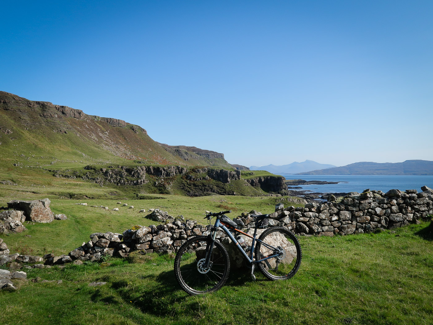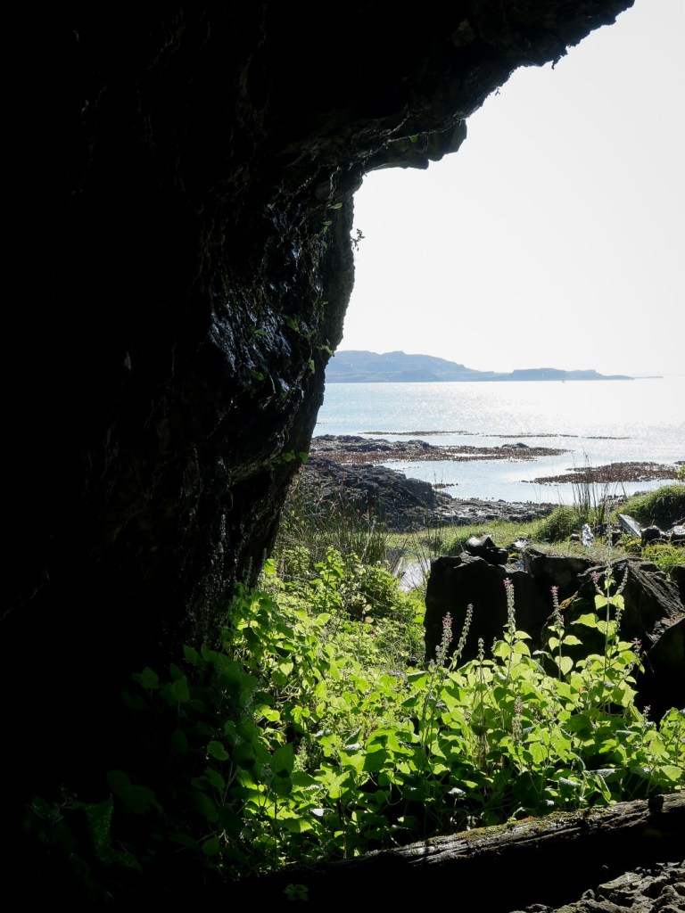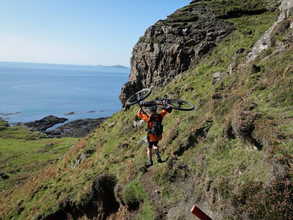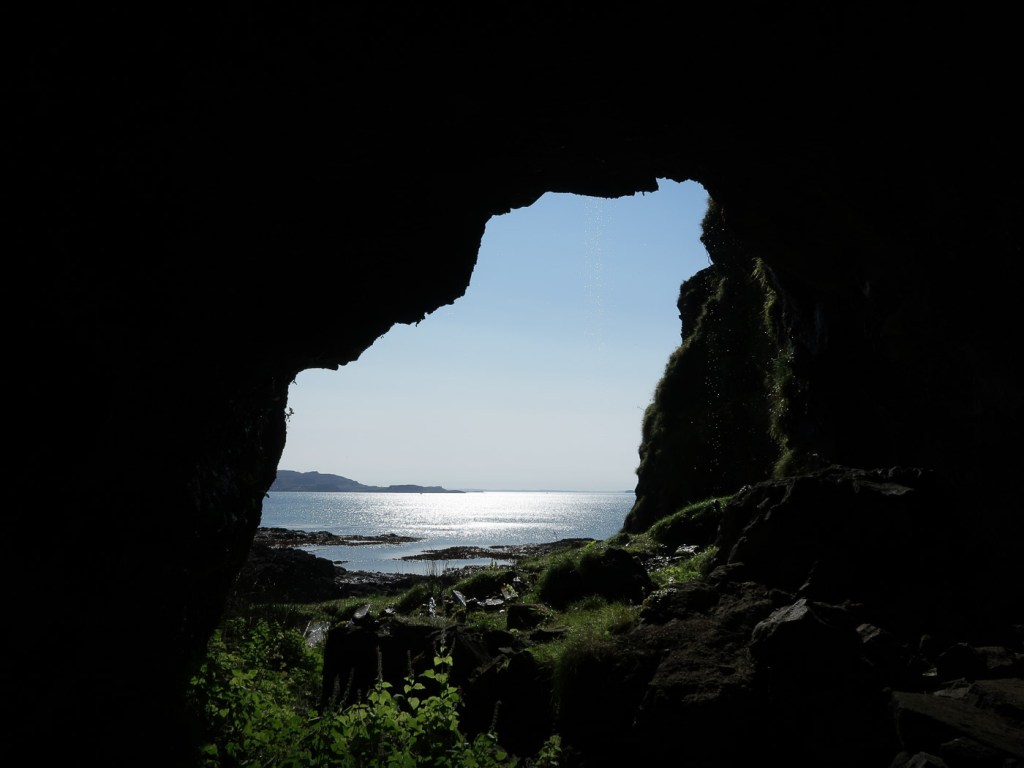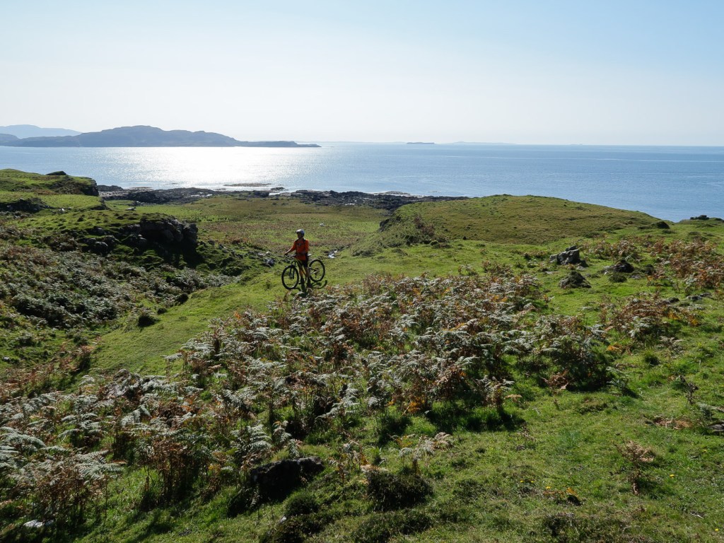 Today we decided to have a bike ride and there was one that I fancied that turned out to be amazing. the day was hot and sunny, we couldn’t believe our luck. The weather being way better than the forecast. We parked the van at the point that the track came up to the road so our little bit of road riding would be at the end. the ride had everything, single track, wild location, deserted villages steep cliffs hike a bike down a steep cliff, amazing views over to the Treshnish Isles, Coll and Tiree. A cave used for distilling, a Dun and iron age fort. what a day……