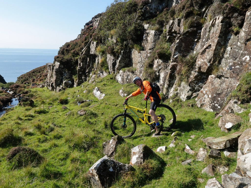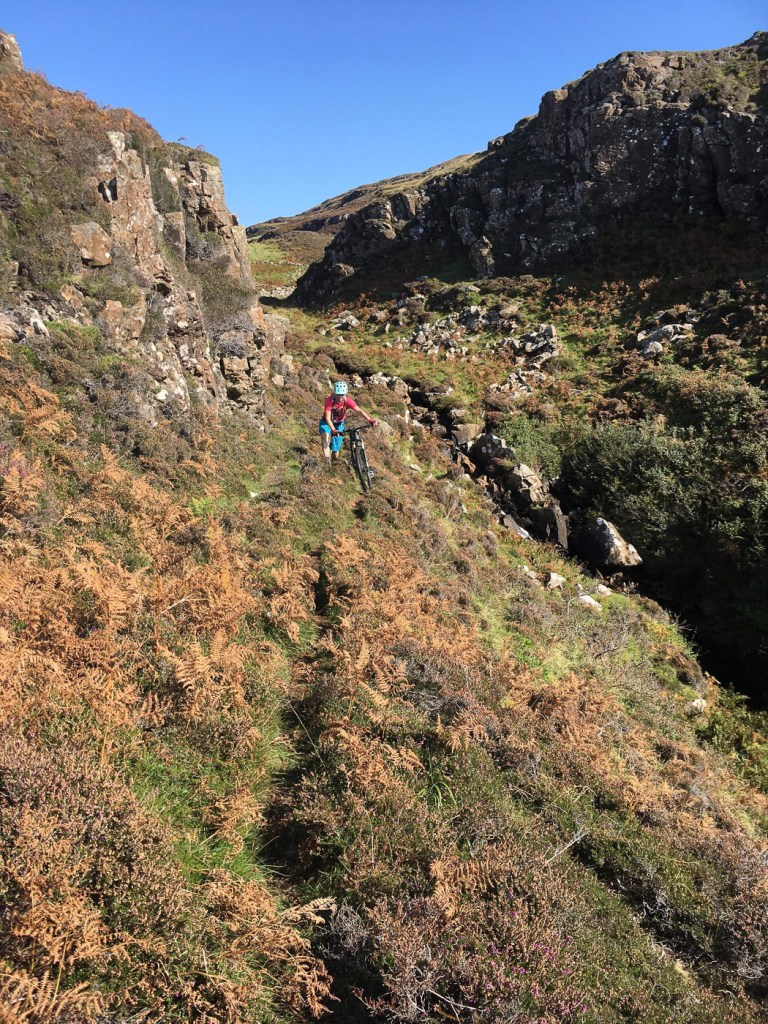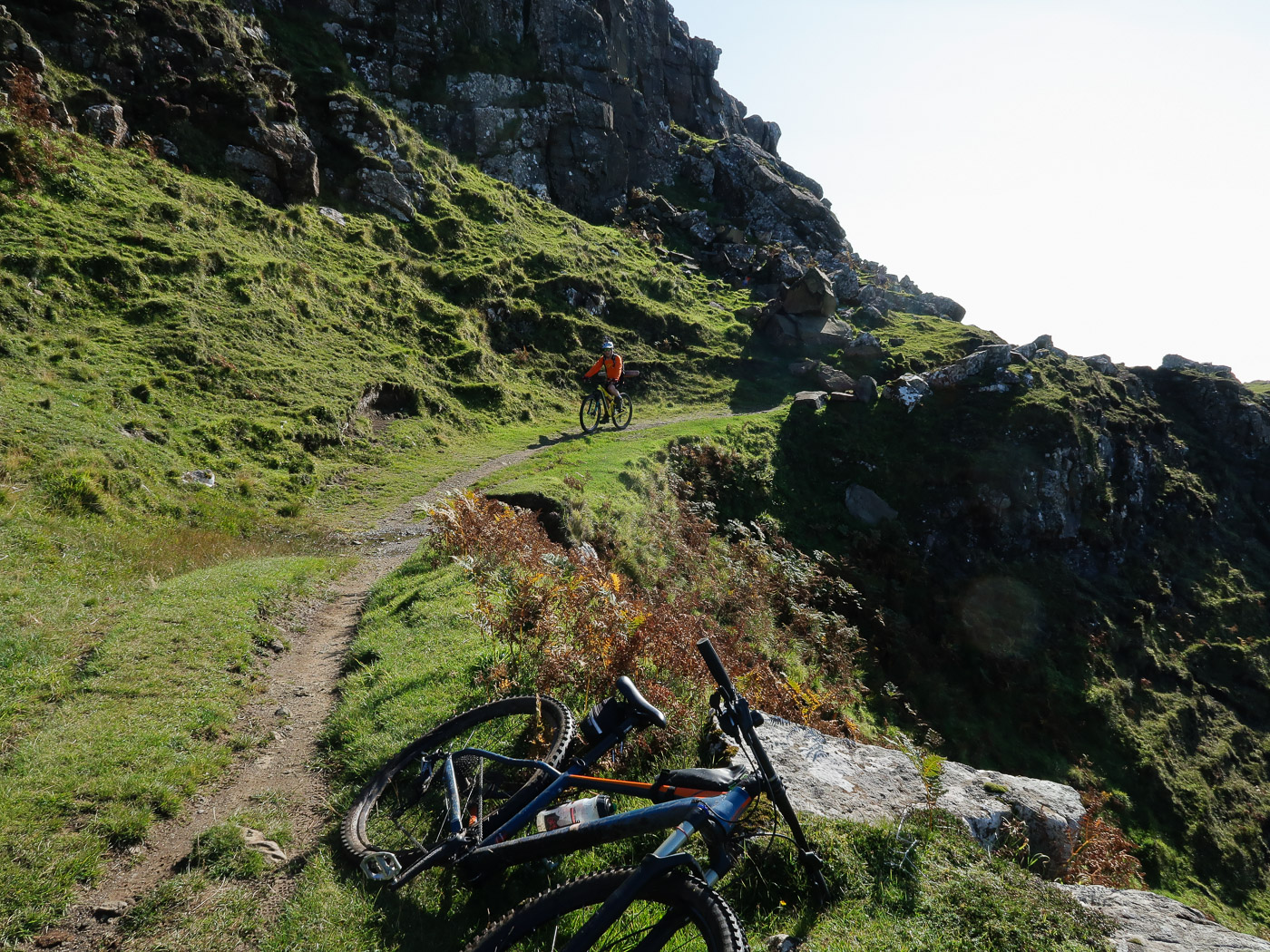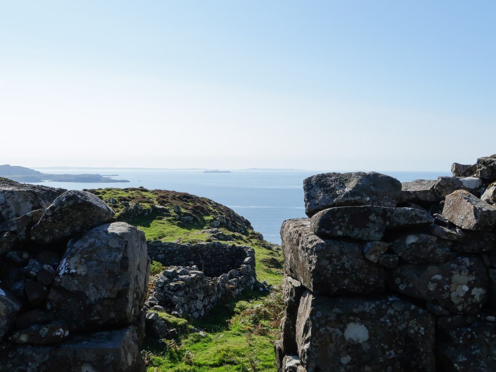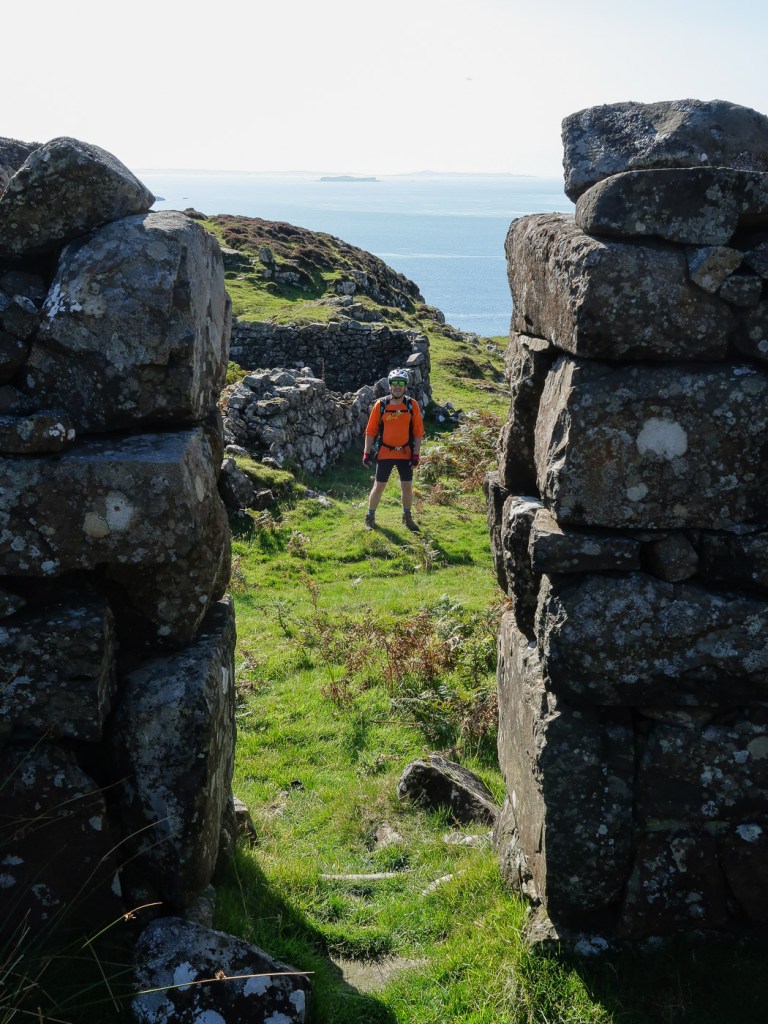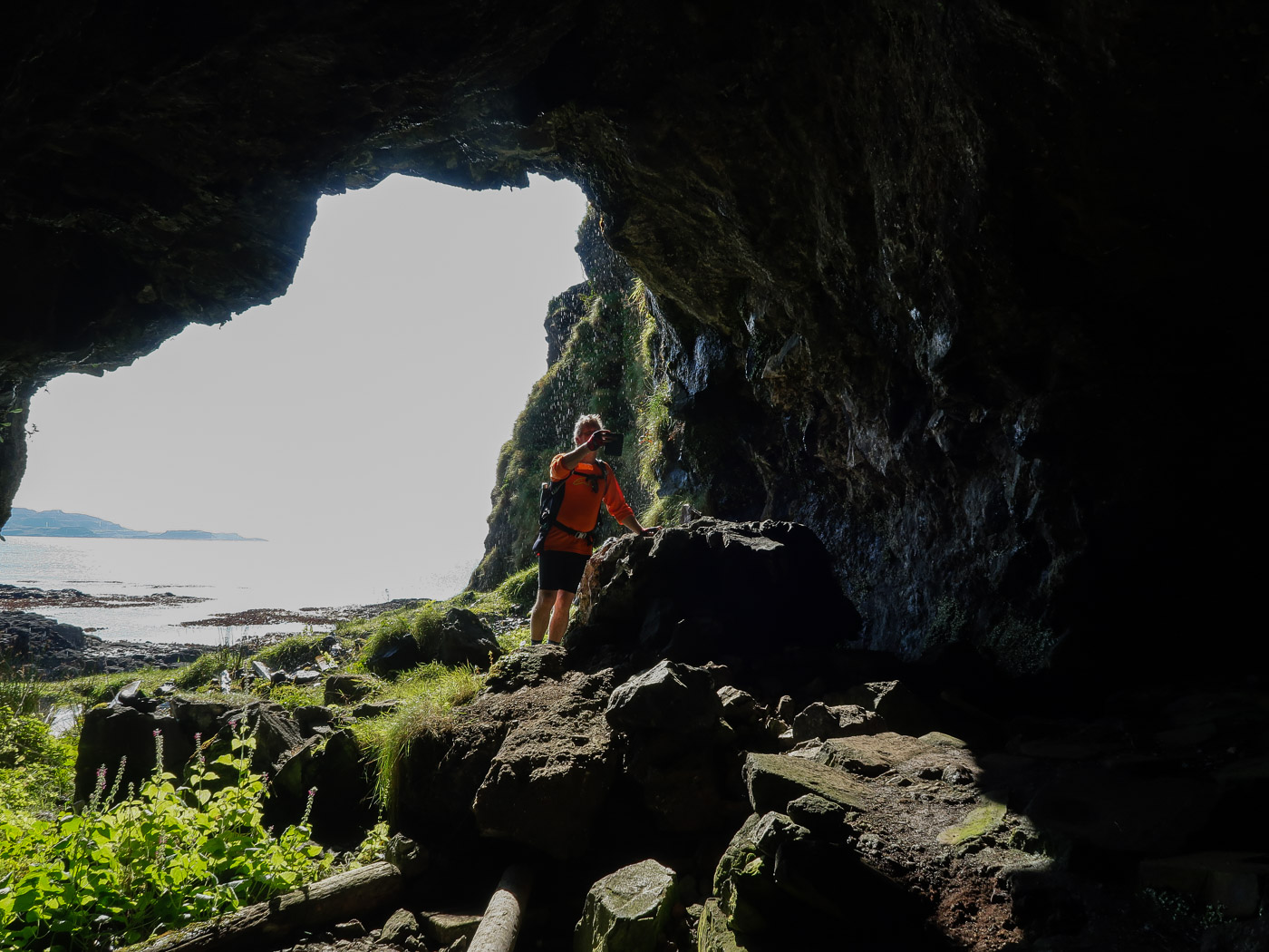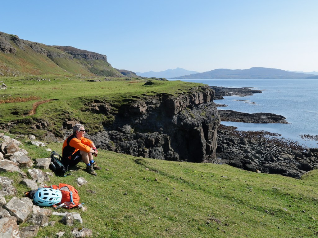 Today we decided to have a bike ride and there was one that I fancied that turned out to be amazing. the day was hot and sunny, we couldn’t believe our luck. The weather being way better than the forecast. We parked the van at the point that the track came up to the road so our little bit of road riding would be at the end. the ride had everything, single track, wild location, deserted villages steep cliffs hike a bike down a steep cliff, amazing views over to the Treshnish Isles, Coll and Tiree. A cave used for distilling, a Dun and iron age fort. what a day……