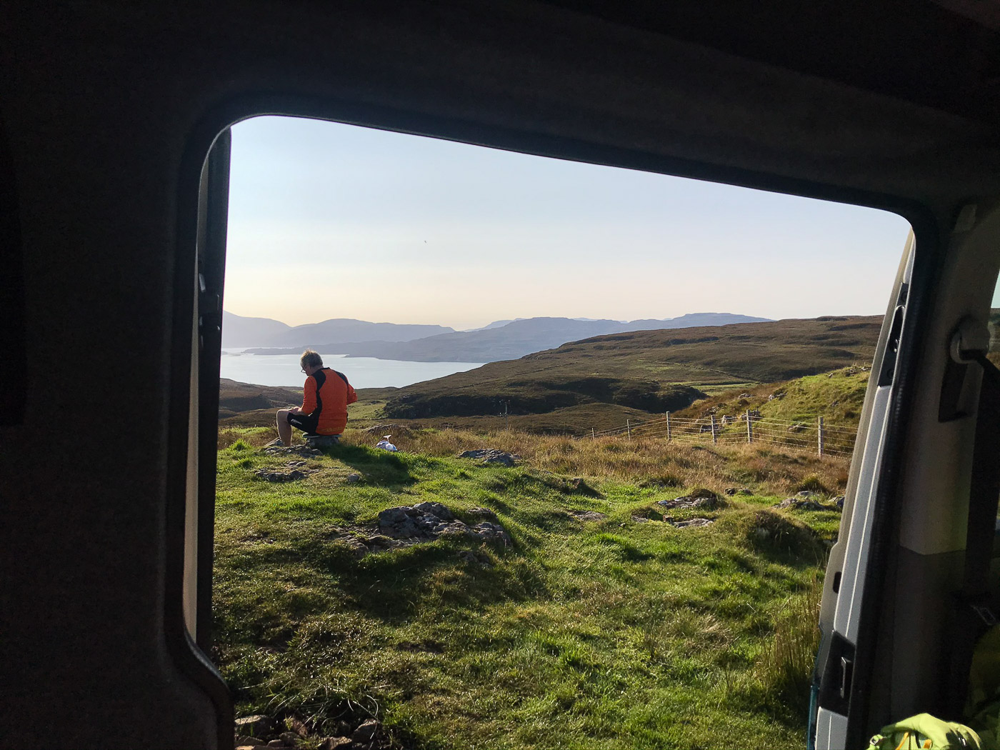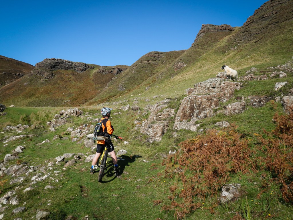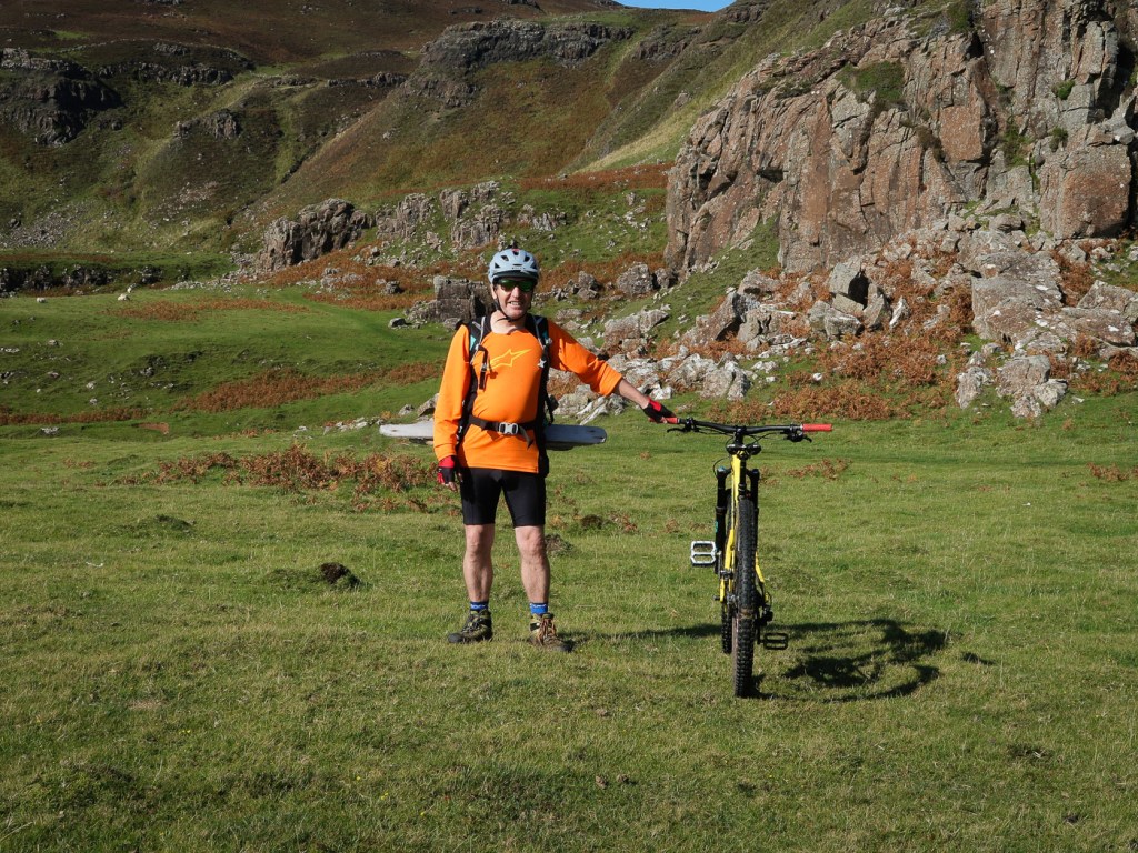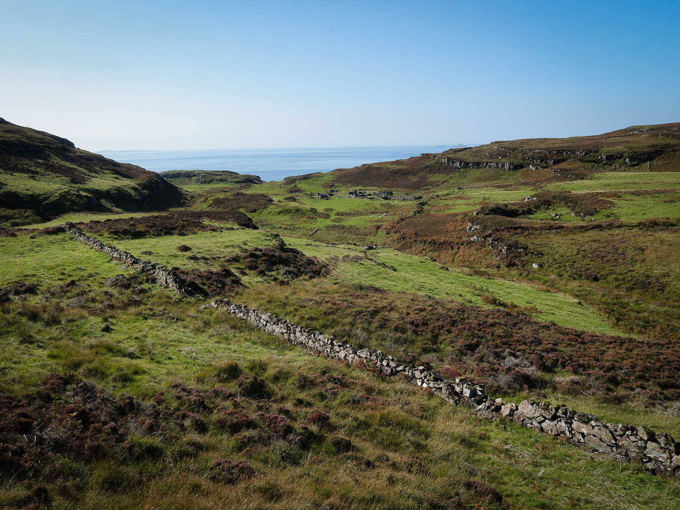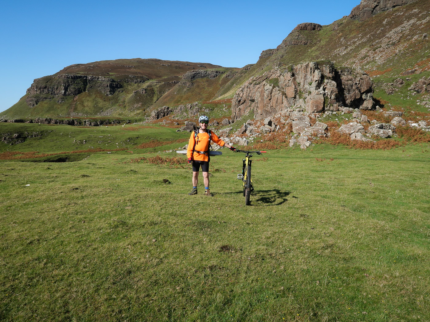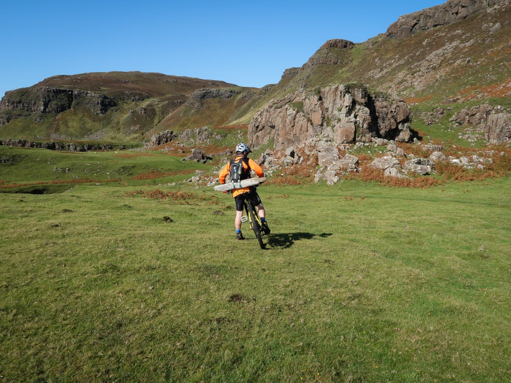 Today we decided to have a bike ride and there was one that I fancied that turned out to be amazing. the day was hot and sunny, we couldn’t believe our luck. The weather being way better than the forecast. We parked the van at the point that the track came up to the road so our little bit of road riding would be at the end. the ride had everything, single track, wild location, deserted villages steep cliffs hike a bike down a steep cliff, amazing views over to the Treshnish Isles, Coll and Tiree. A cave used for distilling, a Dun and iron age fort. what a day……