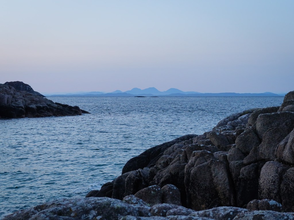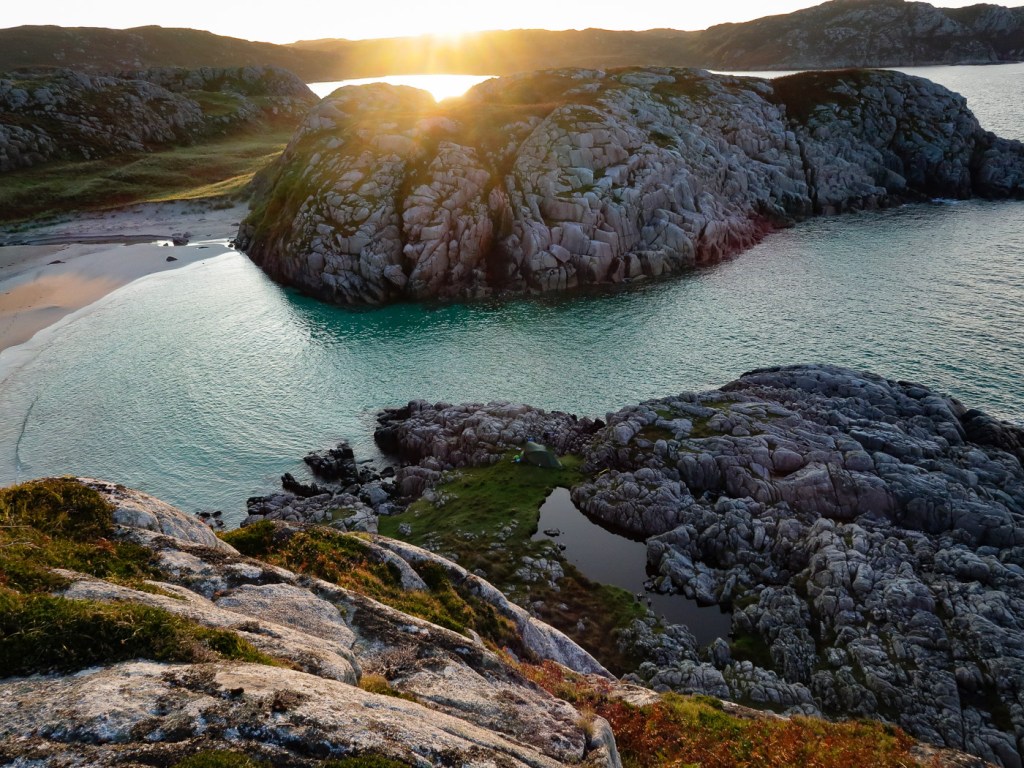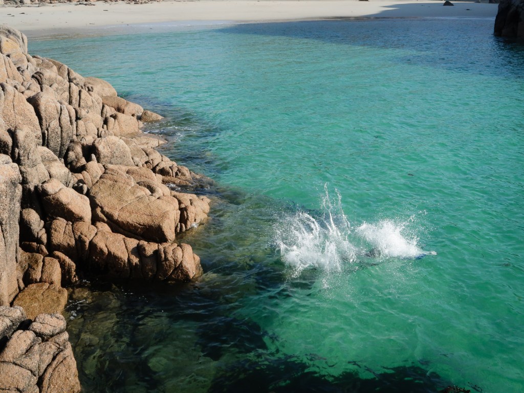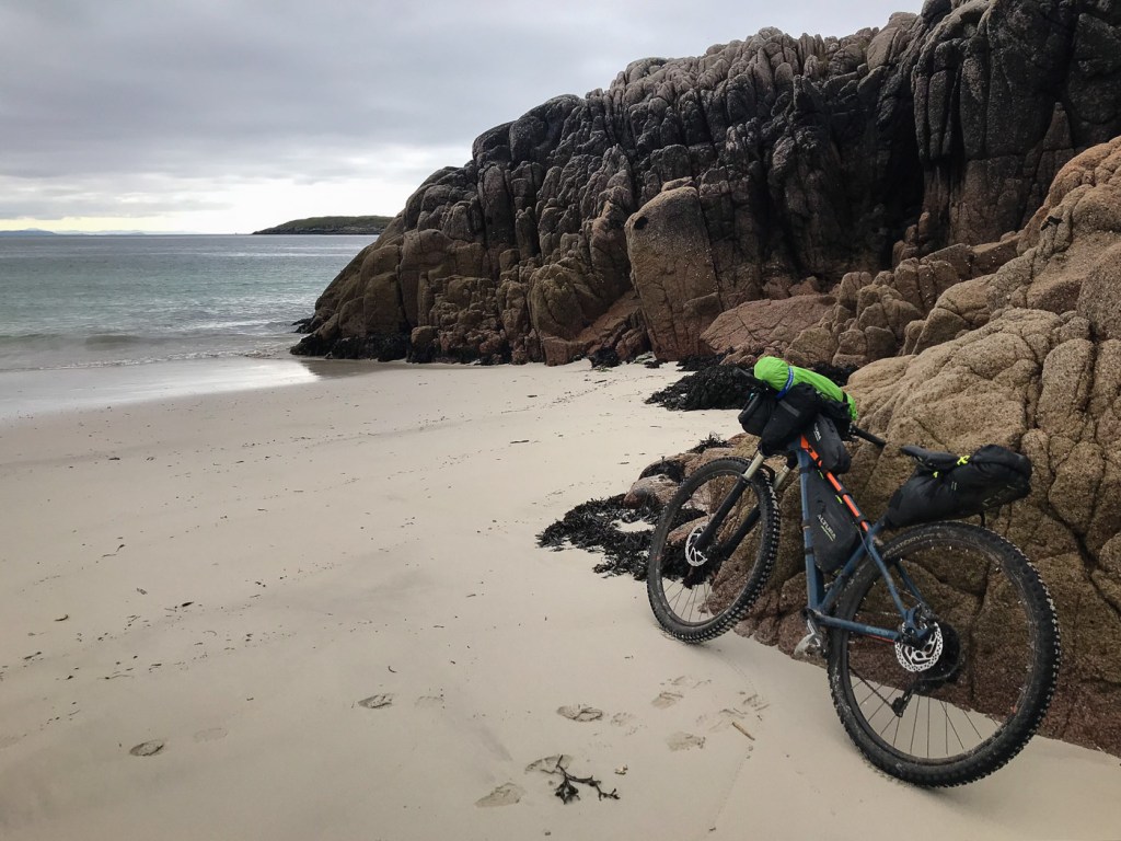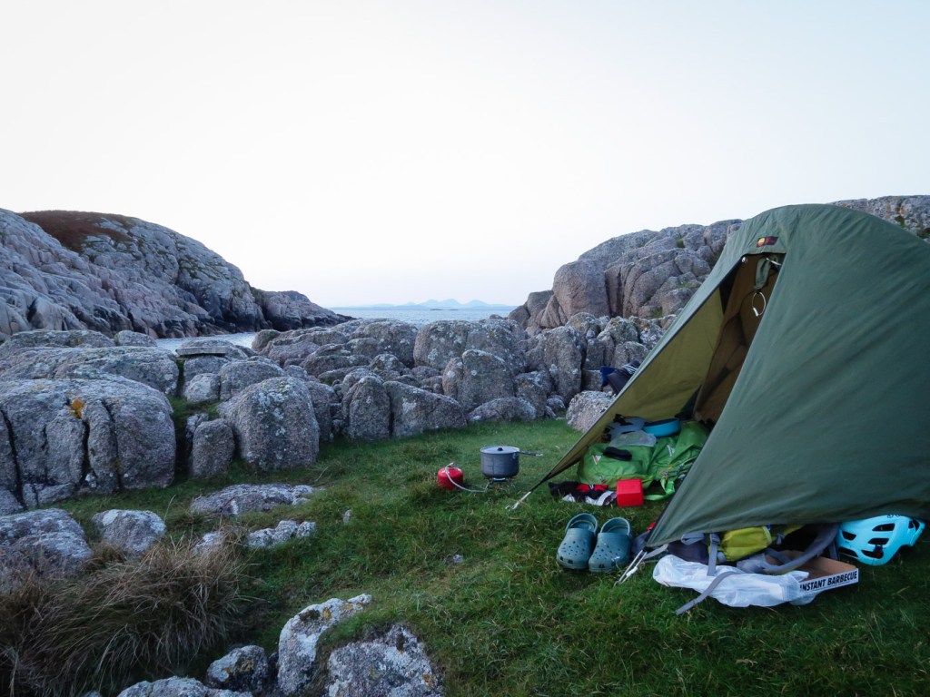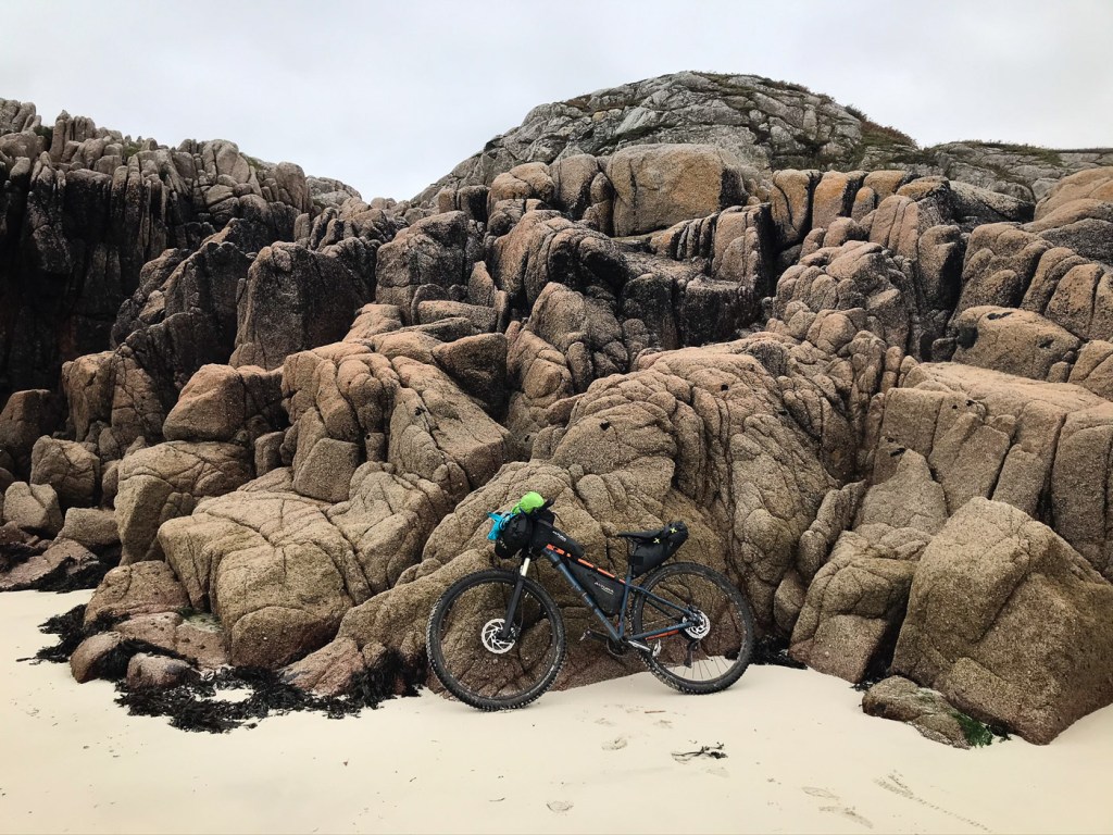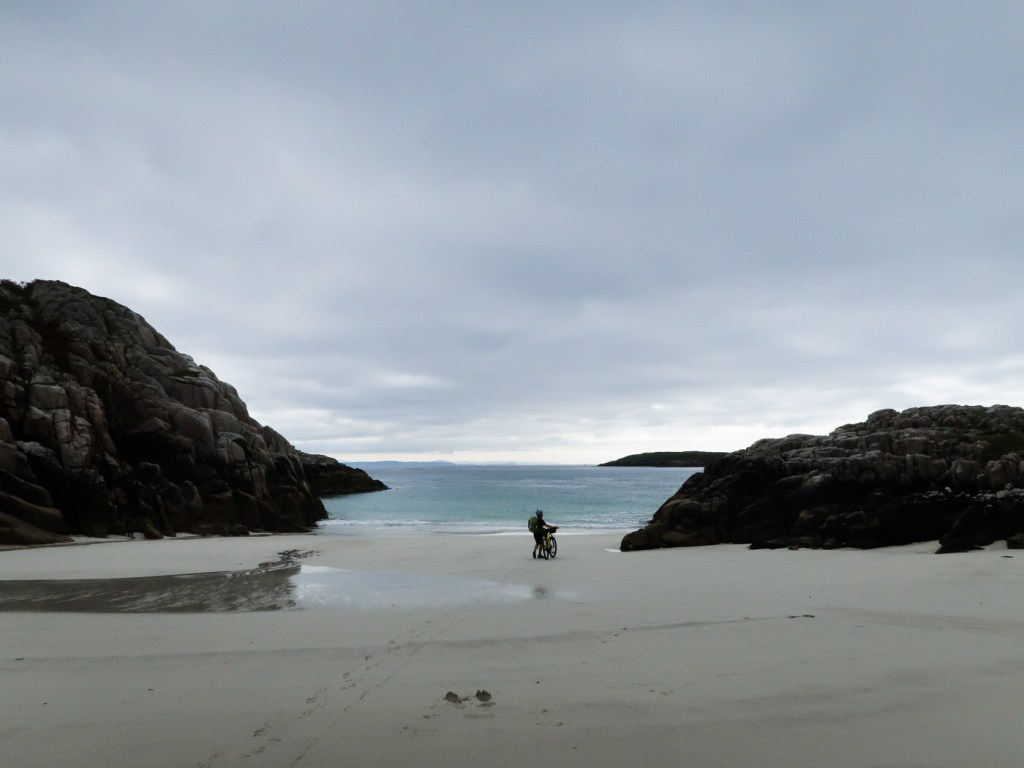Today was kenny’s birthday adn the weather excelled itself. Sunny warm and lovely. After breakfast and the sun had warmed things up with got the wet suits on and had an amazing scramble round the little island in the middle of the bay. We swam across little inlets and to the shore – it was fantastic. After lunch we packed up all the stuff and headed back to the van. It has to be said the return journey – which was my route did not tuen out as imagined. It was mostly hike a bike and deer fences. but character forming!!!