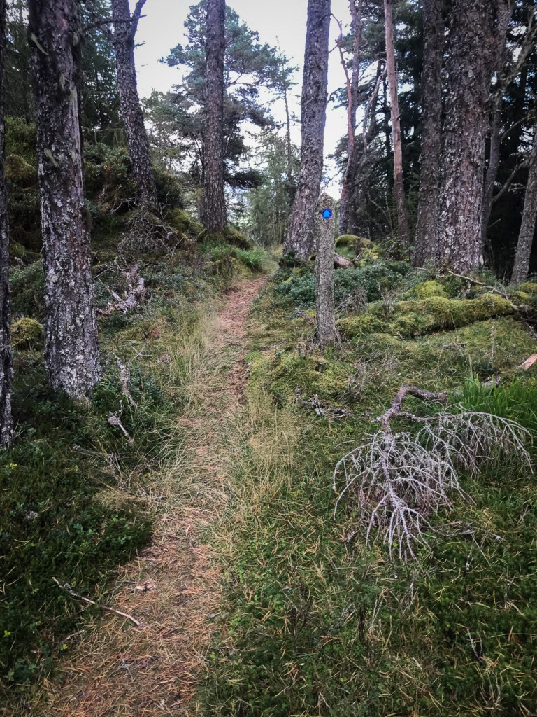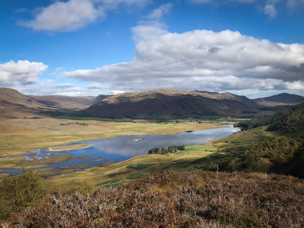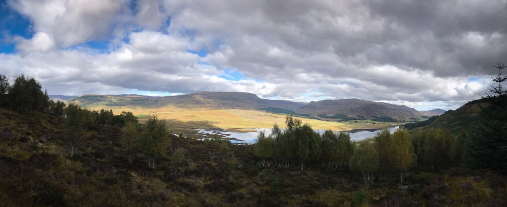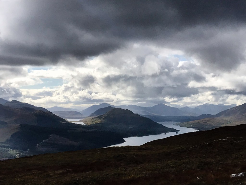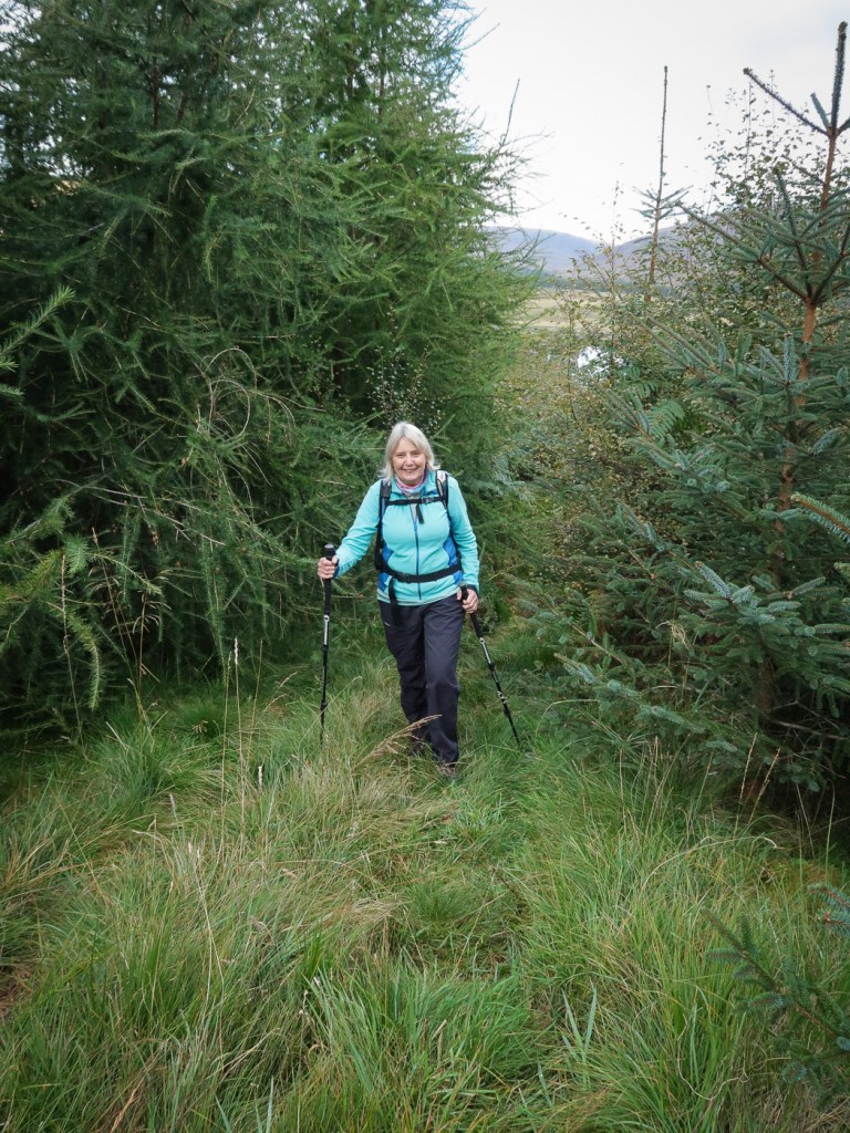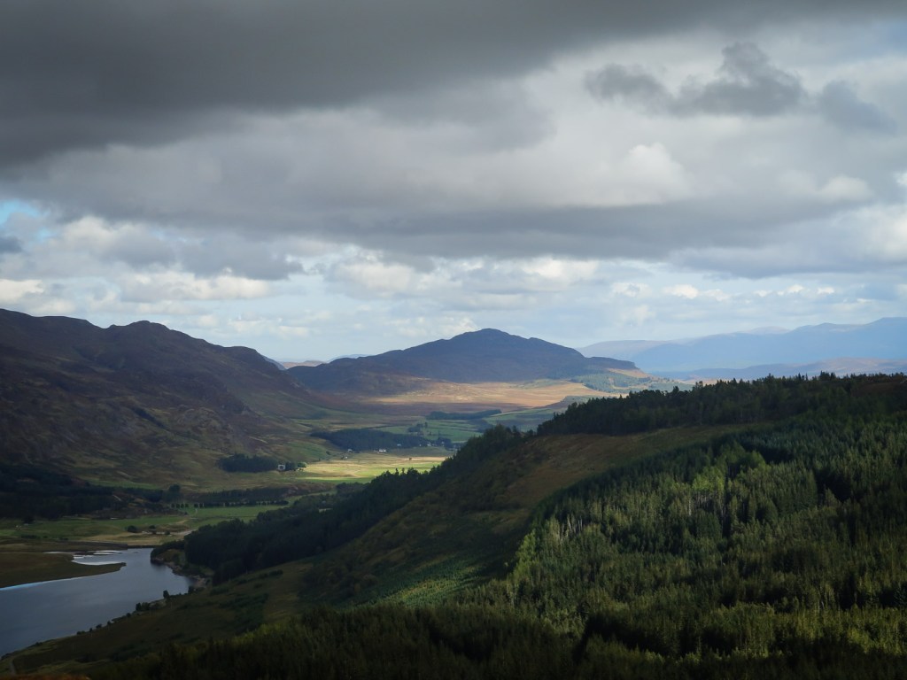 I picked this route out of my Grahams book, it seemed a good length for a short day walk and it was near the hills Joe and I were up a few weeks before so it is always nice to do a few in the same area. Chris joined me Dot was a bit broken after an epic walk a few days before. The route looked unlikely at first as we looked up a field to a dense wood that was to be our way up. In fact though there was a little path the went up and then there was a gap between the two types of woods. We emerged from the woods onto a little ridge that gave us wonderful views back down to Laggan. The ridge curved round and after climbing a deer fence we reached the trig point which was the summit. We aimed for another fence and wooded area via a boggy low bit that wasn’t as boggy as it looked. Though the gate and over rough ground until we picked up a way marked path that took us along another lovely ridge and down to a junction. We headed up to explore a old fort before a walk round via forest tracks to Chris van which was parked strategically to avoid a 2 Km road walk.