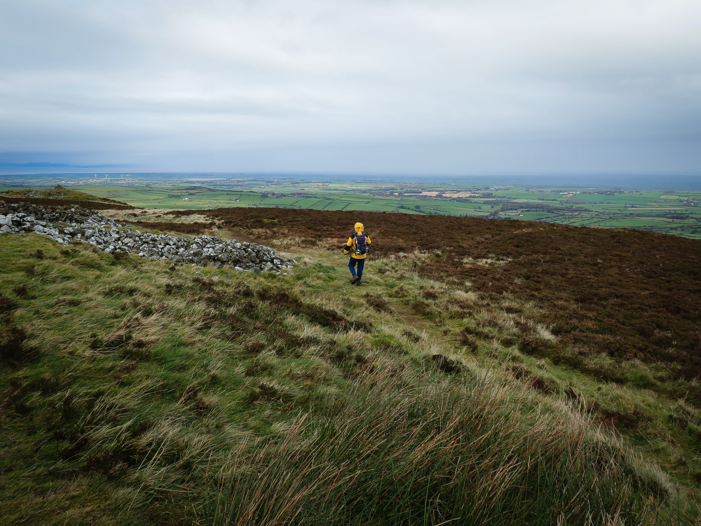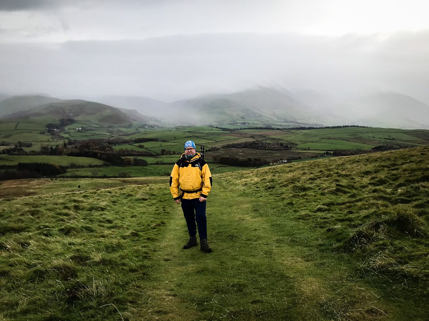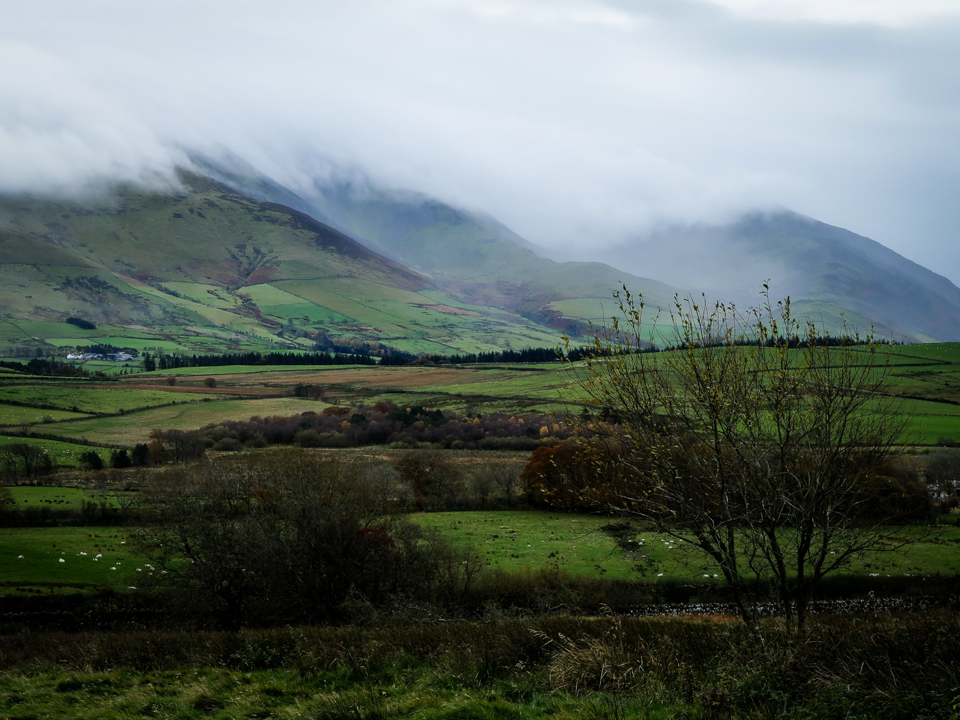 It was a very poor forecast, windy and very low cloud, so joe and I decided to tick off a couple of small hills that I wanted to climb. The Day turned out drier that we expected and we got up Binsey with out getting to wet. it was a simple up and down walk. Back to the car we drove to Great Mell Fell, which proved to be more of a walk, we walked round the bottom, then up over the top and down a steep slope on the other side. there was no path for a while and it was very wet under foot. Then a very very muddy path and rain.