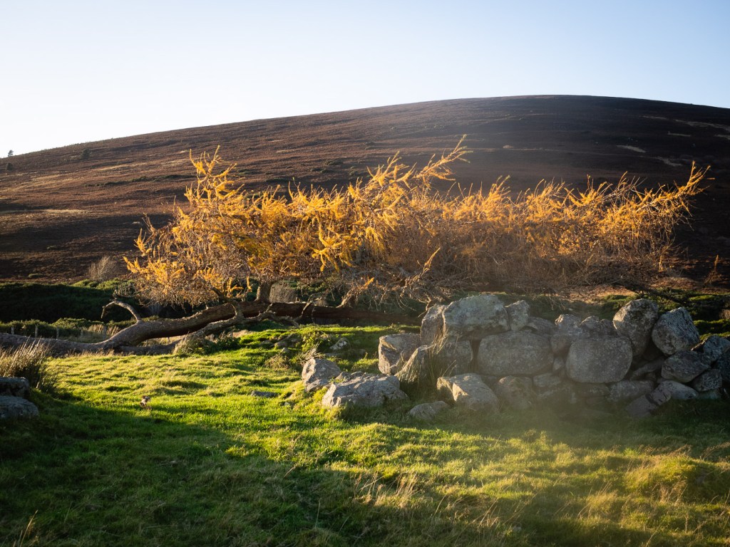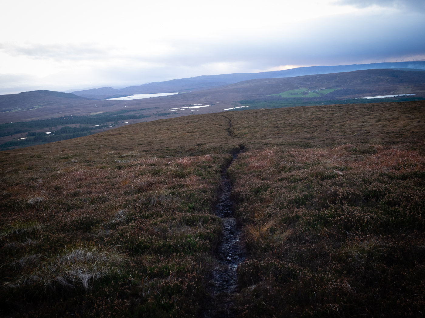 After taking photos at Auchlochan I walked up Knock of Braemoray which is a Sub 2,000 peak. I keaded straight up the steep side knee deep in heather! very hard work. half way up I got a call from Kenny to come and help him stack his wood. So after a route march to the top I found a little path all the way back to the road – much easier! but then i walk along the road to the car. Great veiws from the top.